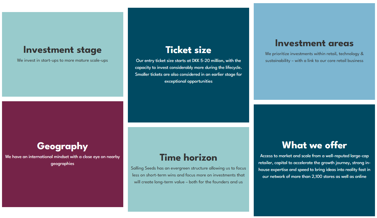 Målet er at engagere sig i start-ups og scale-ups, som med nye forretningsmodeller og teknologier kan bidrage til at udvikle detailbranchen – og styrke Salling Groups kerneforretning på længere sigt.