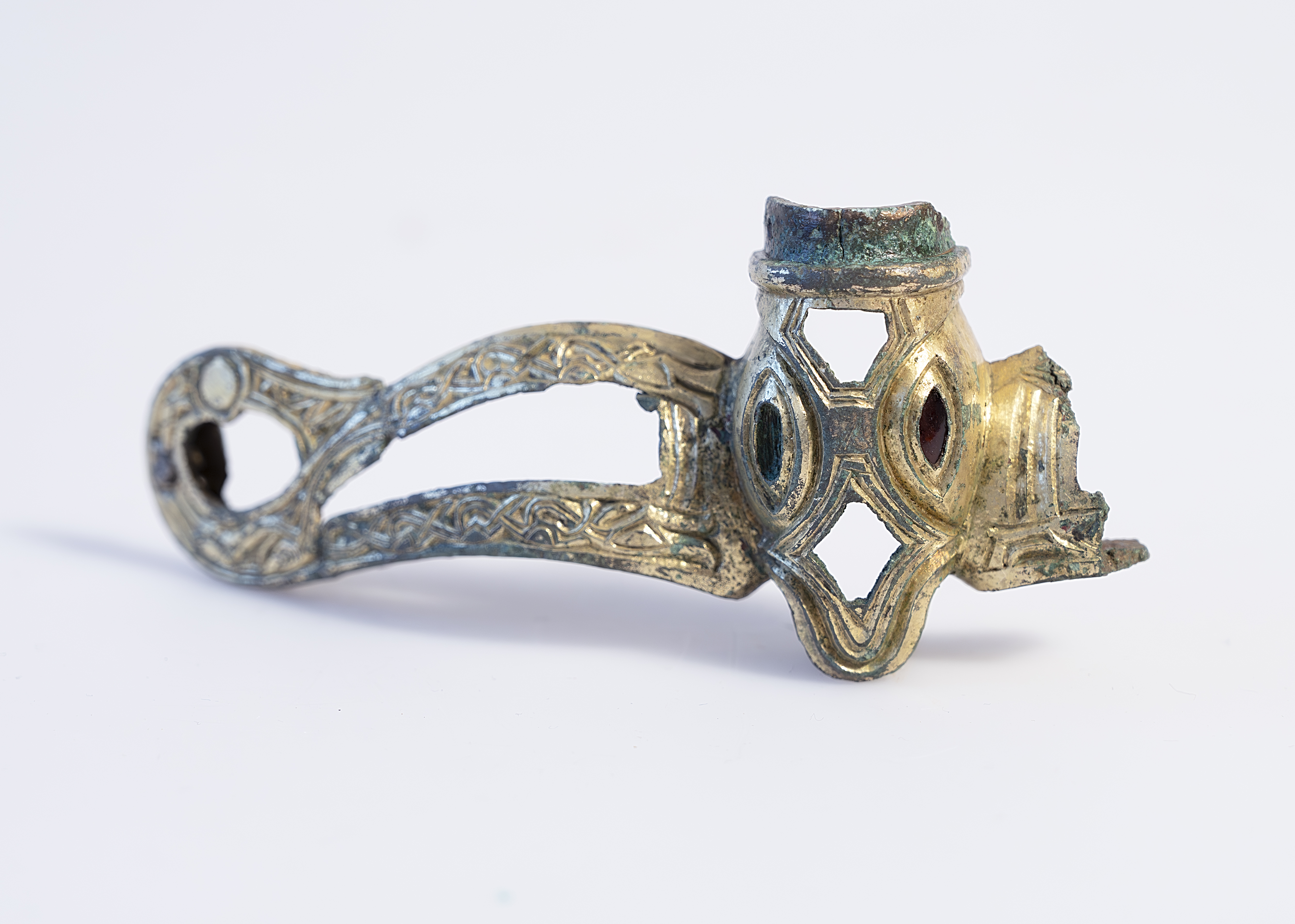 Et øjenbryn fra en 700-tals pragthjelm blev sidste år fundet få hundrede meter fra kongehalsområdet i Lejre. Hjelmfragmentet føjer sig til rækken af kostbare fund, som fagpersoner tolker som udtryk for elitær magt i Lejre.