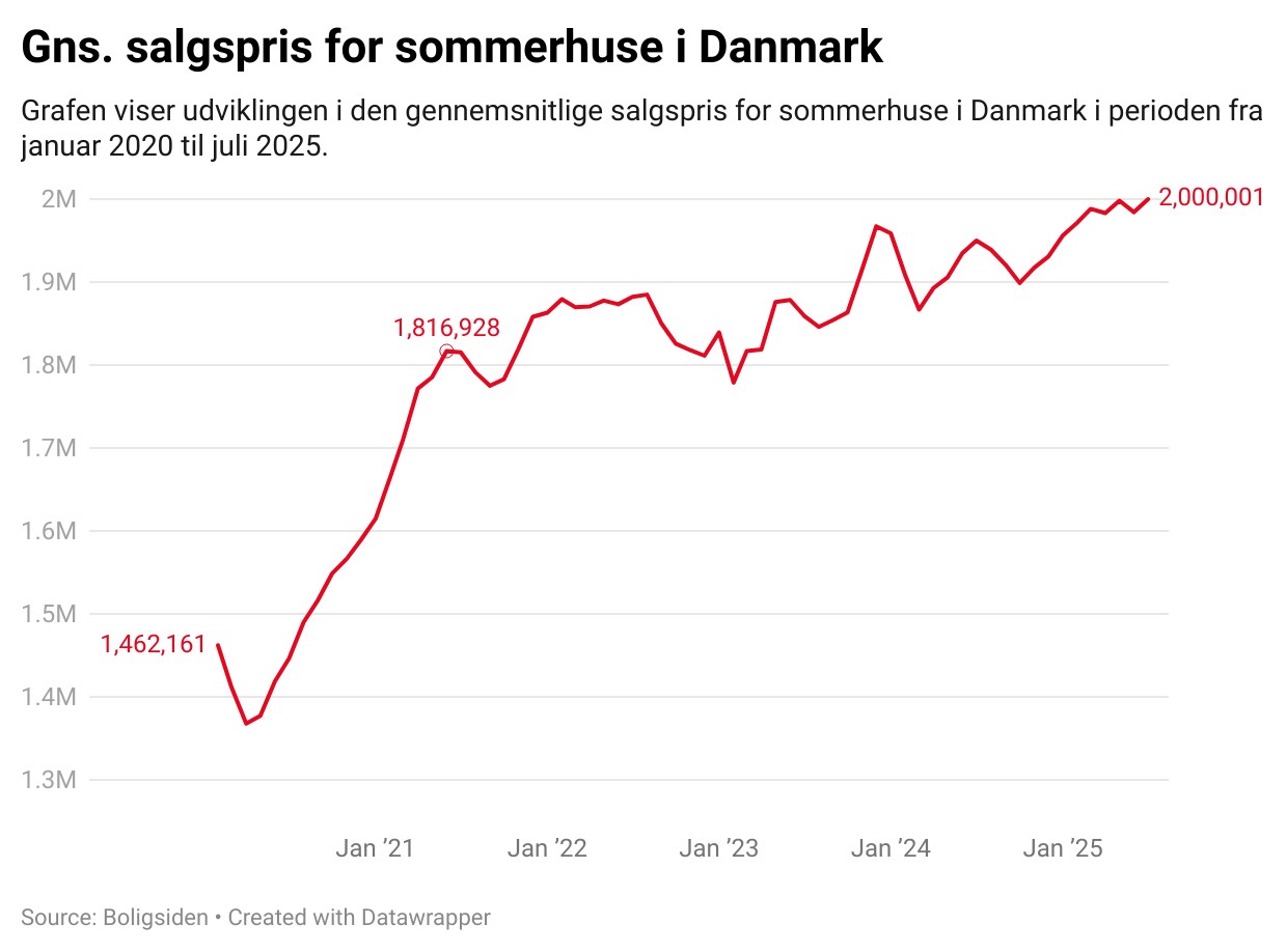 Nye juli-tal fra Boligsidens Markedsindeks viser, at den gennemsnitlige salgspris for sommerhuse i Danmark for første gang ligger på to millioner kroner.