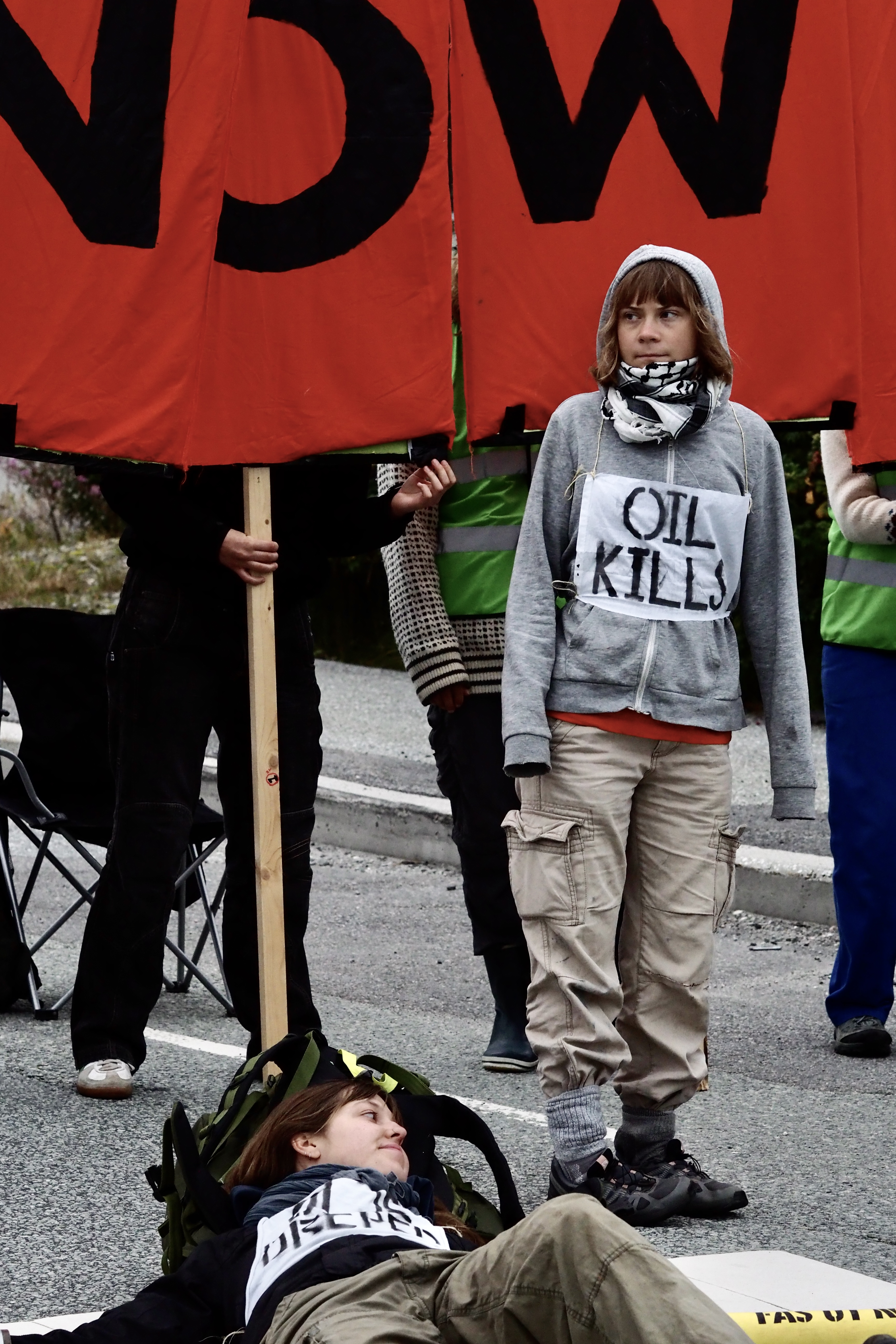 “Vi blokerer hjertet af den norske olieindustri for at kræve, at norske politikere udfaser olie og gas. Det er nødvendigt, hvis vi skal undgå, at klimakatastrofen spinner ud af kontrol og ødelægger vores fælles livsgrundlag," udtaler Elaia Tølbøll, en af de danske aktivister, der er taget til Norge.