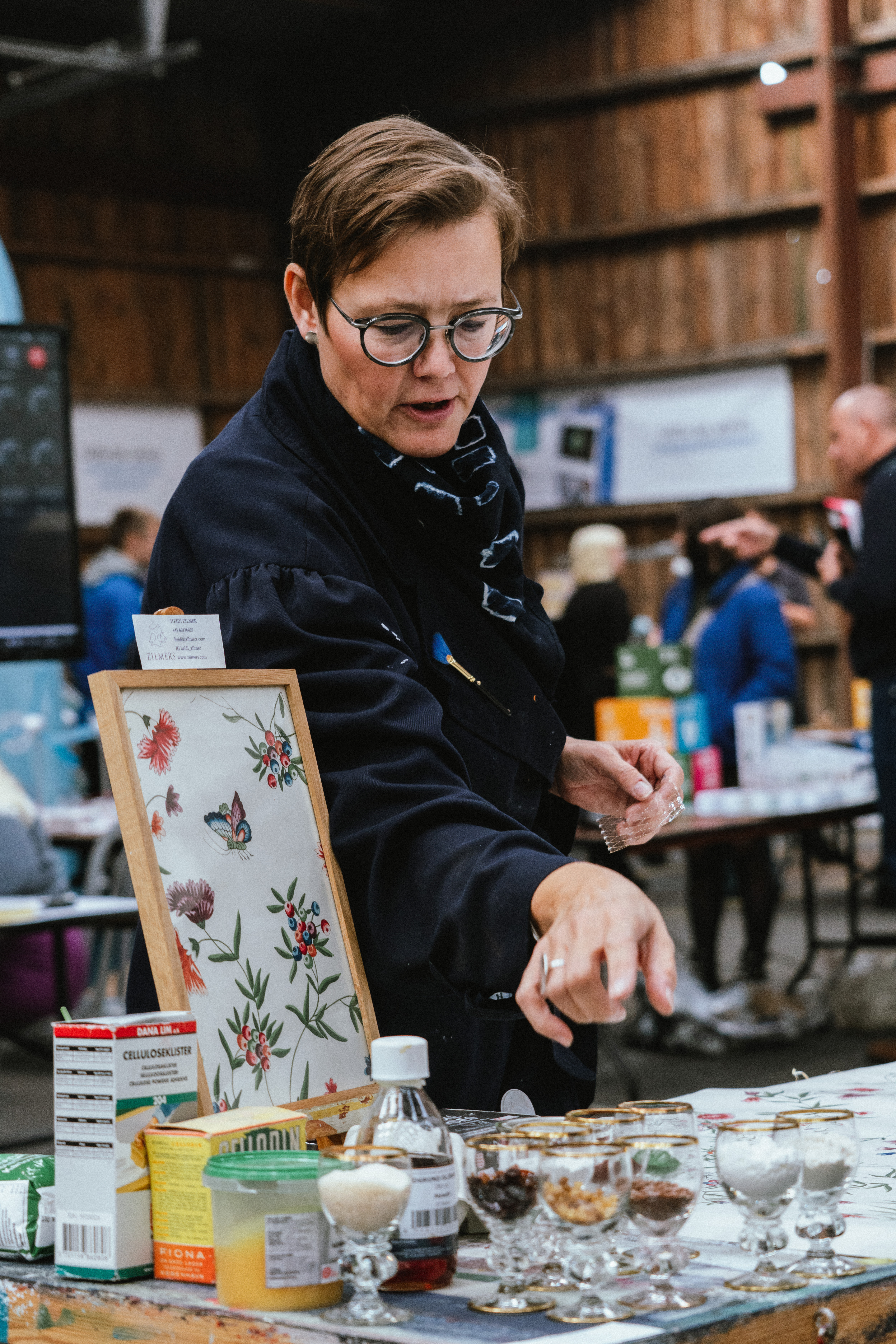 "Det er relativt enkelt at skabe maling af bæredygtige materialer såsom cellulose, kridt og mineralske pigmenter gravet op af jorden," og fortæller hvordan, hun via aktiviteten til GIW, kan formidle, hvor skønt og nemt det er at arbejde med bæredygtige overfladebehandlinger ved at invitere besøgende med ind i processerne. ”Vi skal lave en kopi af et vægmønster projekt fra Christiansfeld, som jeg er meget stolt af at have genskabt. Den stolthed og glæde ved at skabe noget smukt ønsker jeg at formidle videre,” siger hun.