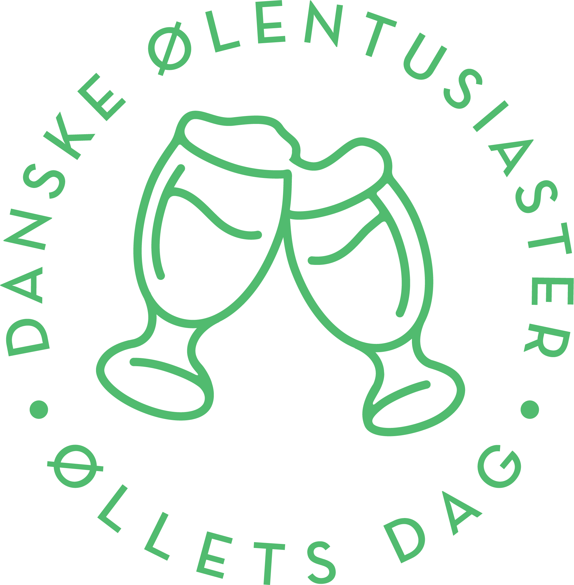 Øllets Dag logo - To grønne ølglas der skåler, omgivet af teksten "Danske Ølentusiaster Øllets Dag".