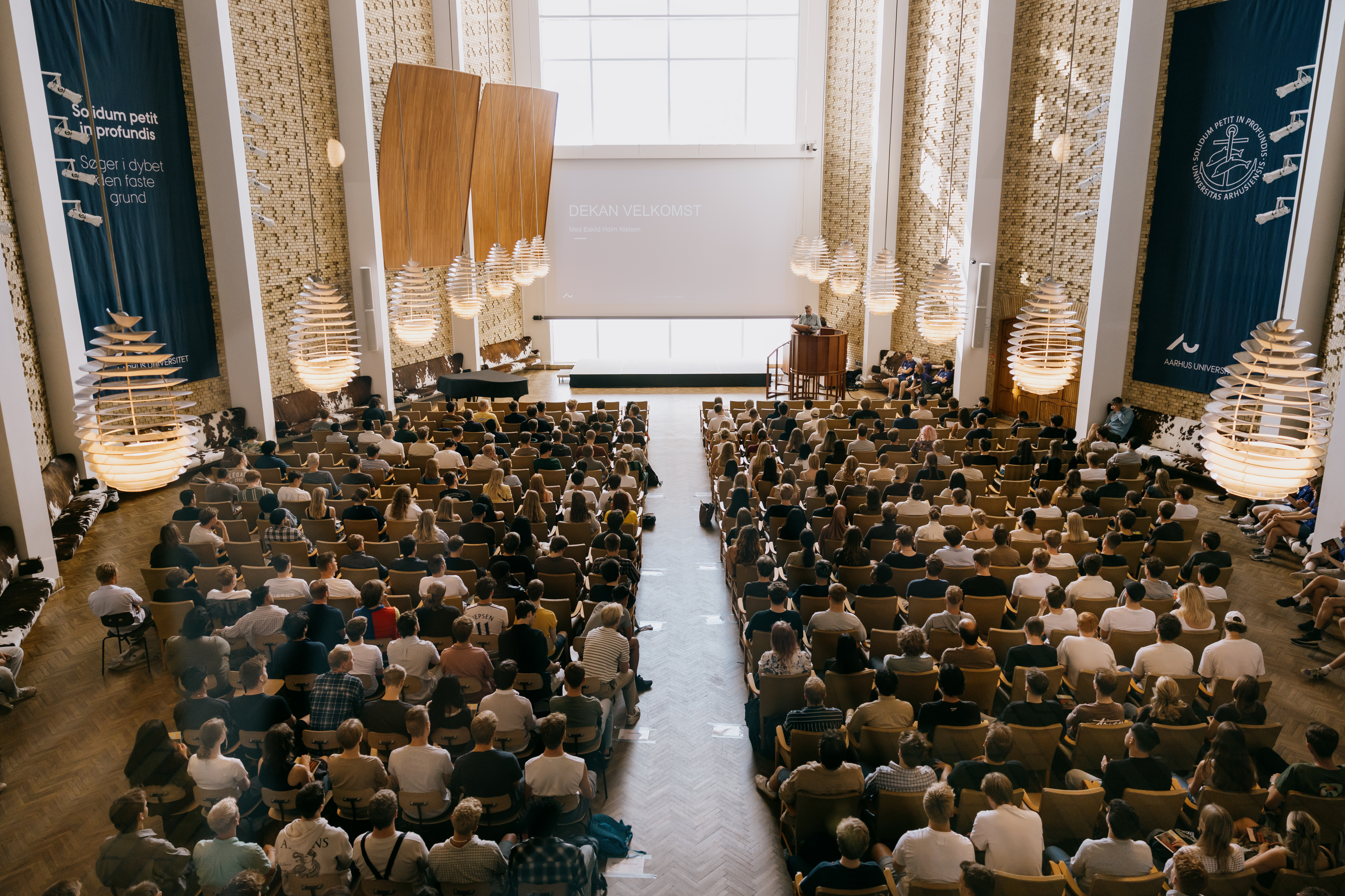 ”Studiestarten er simpelthen årets vigtigste dag for Aarhus Universitet, for fakultetet Technical Sciences og for mig helt personligt,” sagde Eskild Holm Nielsen, dekan for Technical Sciences, da han bød velkommen i aulaen.