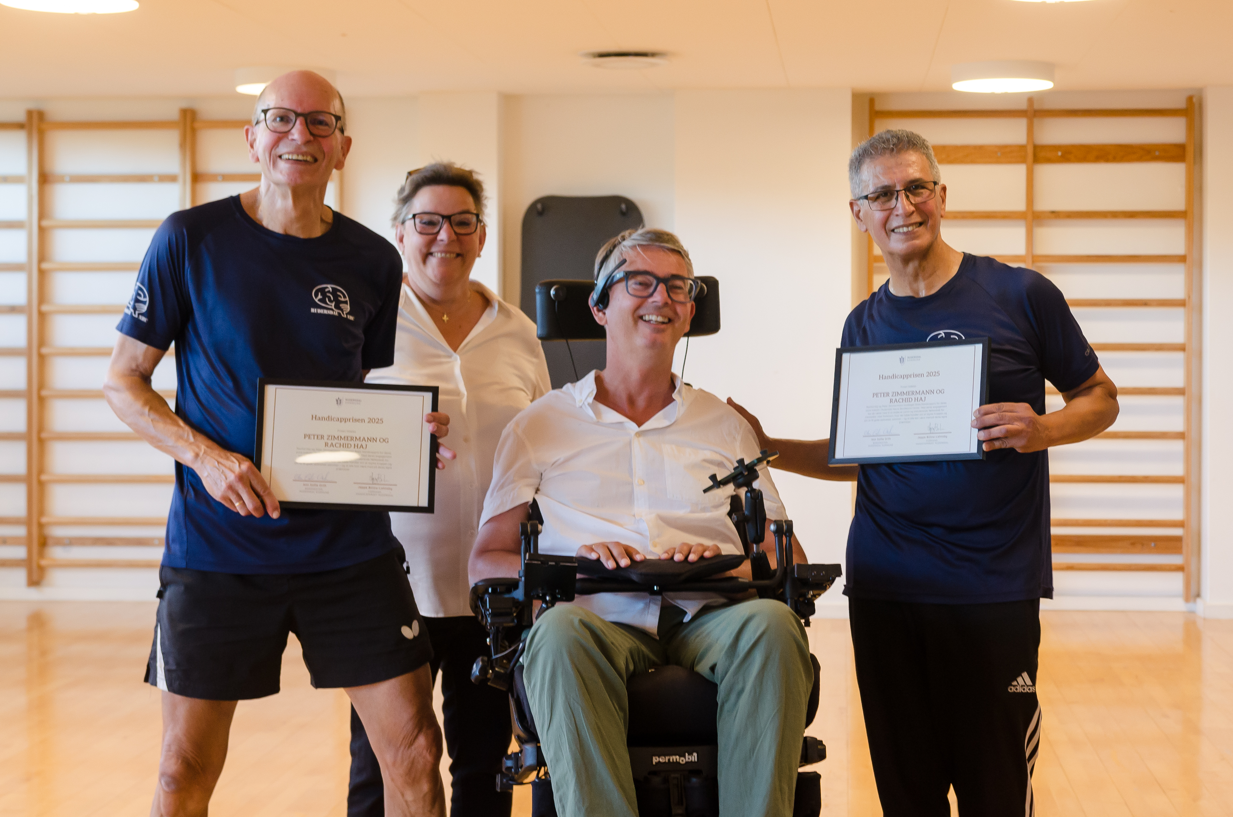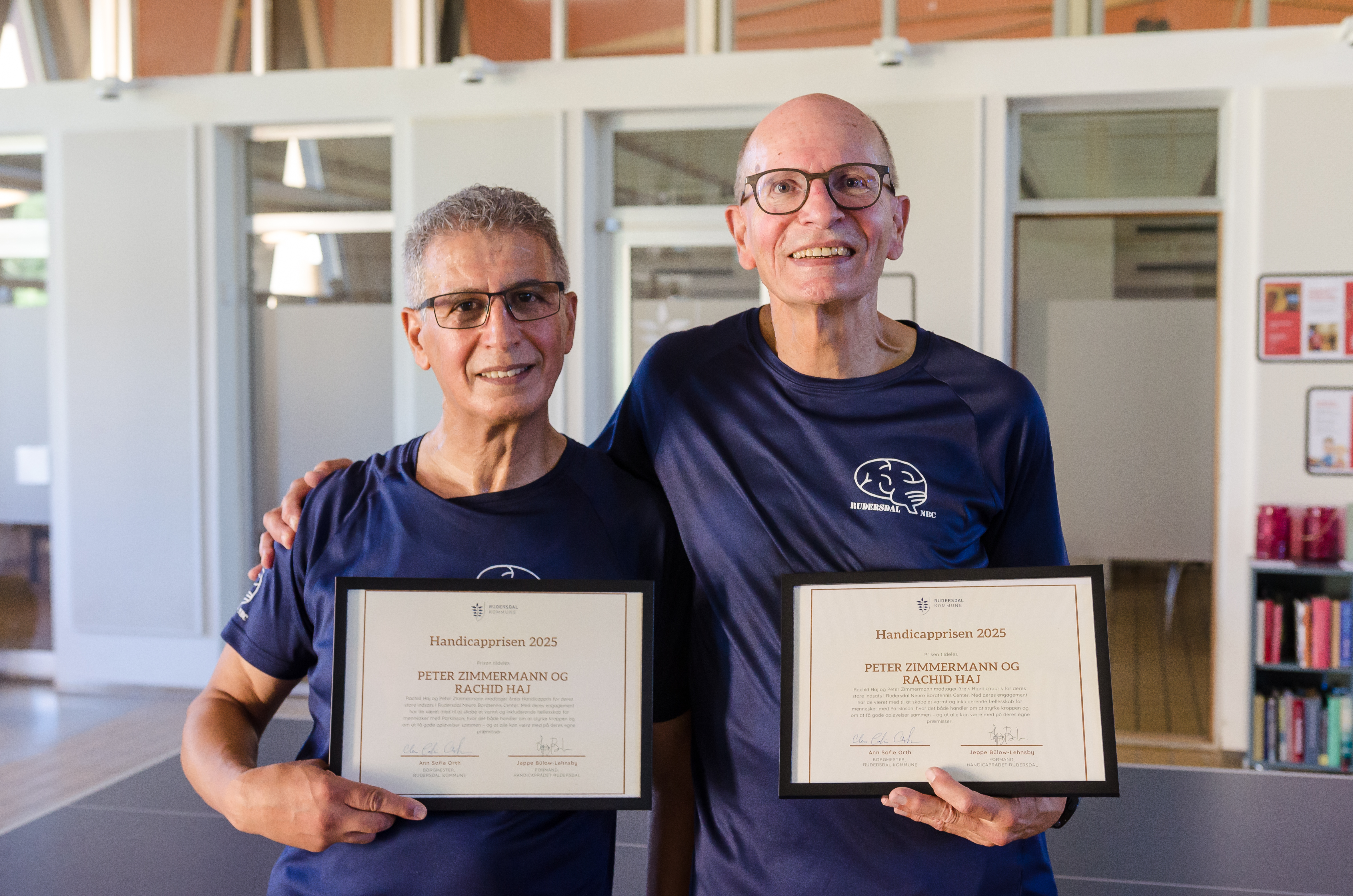 Rudersdal Kommunes Handicappris blev i år overrakt til Rachid Hajib og Peter Zimmermann for deres store engagement i Rudersdal Neuro Bordtennis Center, hvor de har skabt et varmt og inkluderende fællesskab for mennesker med Parkinson.
