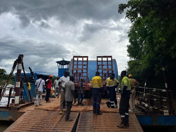Figure 11: One of four Ball Mill Shell segments crossing the Niger River on the way to site (8 August 2025)