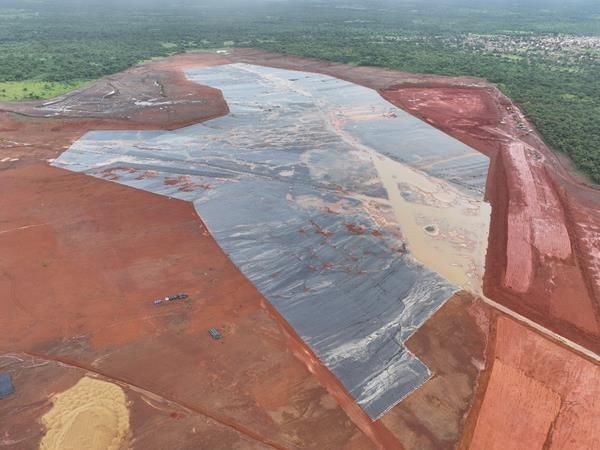 Figure 4: Tailings storage facility showing the extent of lining and main embankment construction (13 August 2025).