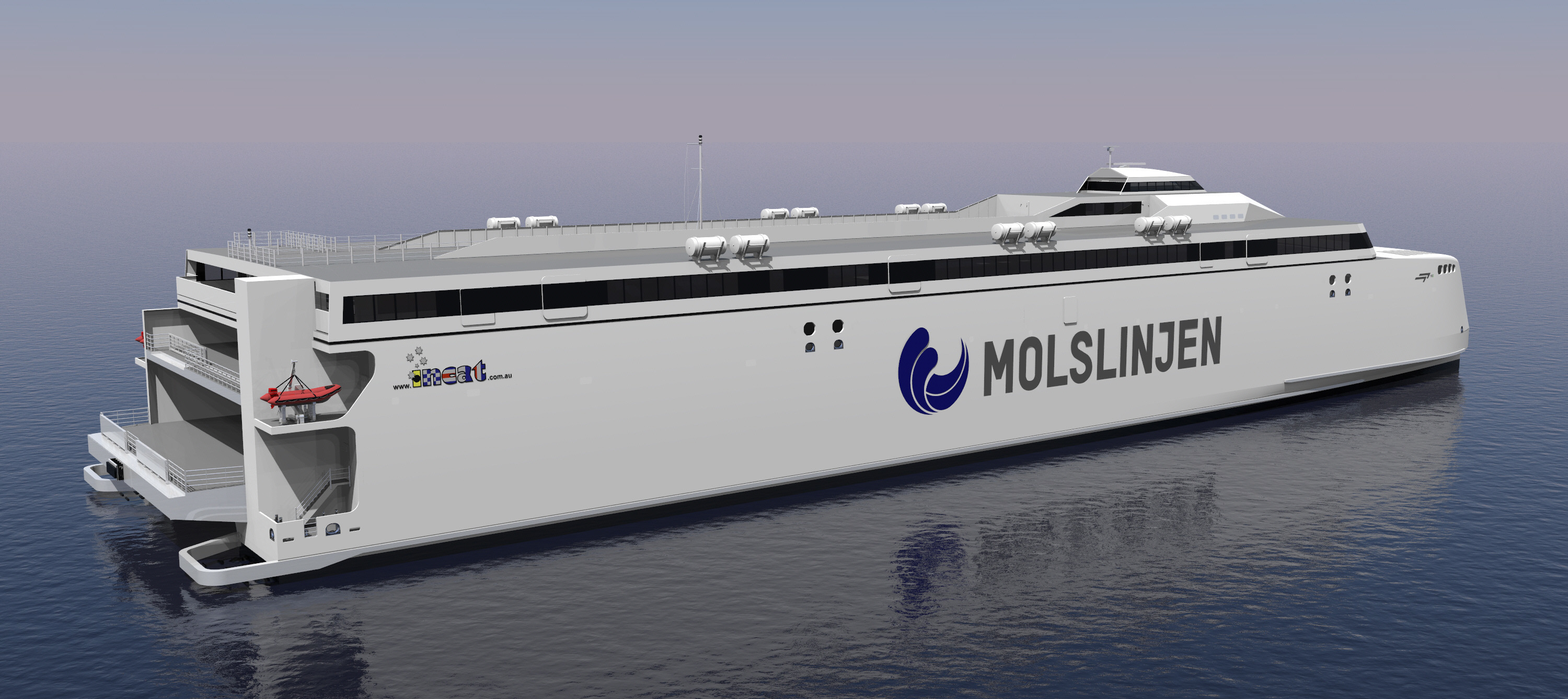 De tre færger kommer til at blive 129 meter lange, 30,5 meter brede, og der bliver plads til 1.483 passagerer og 500 biler.