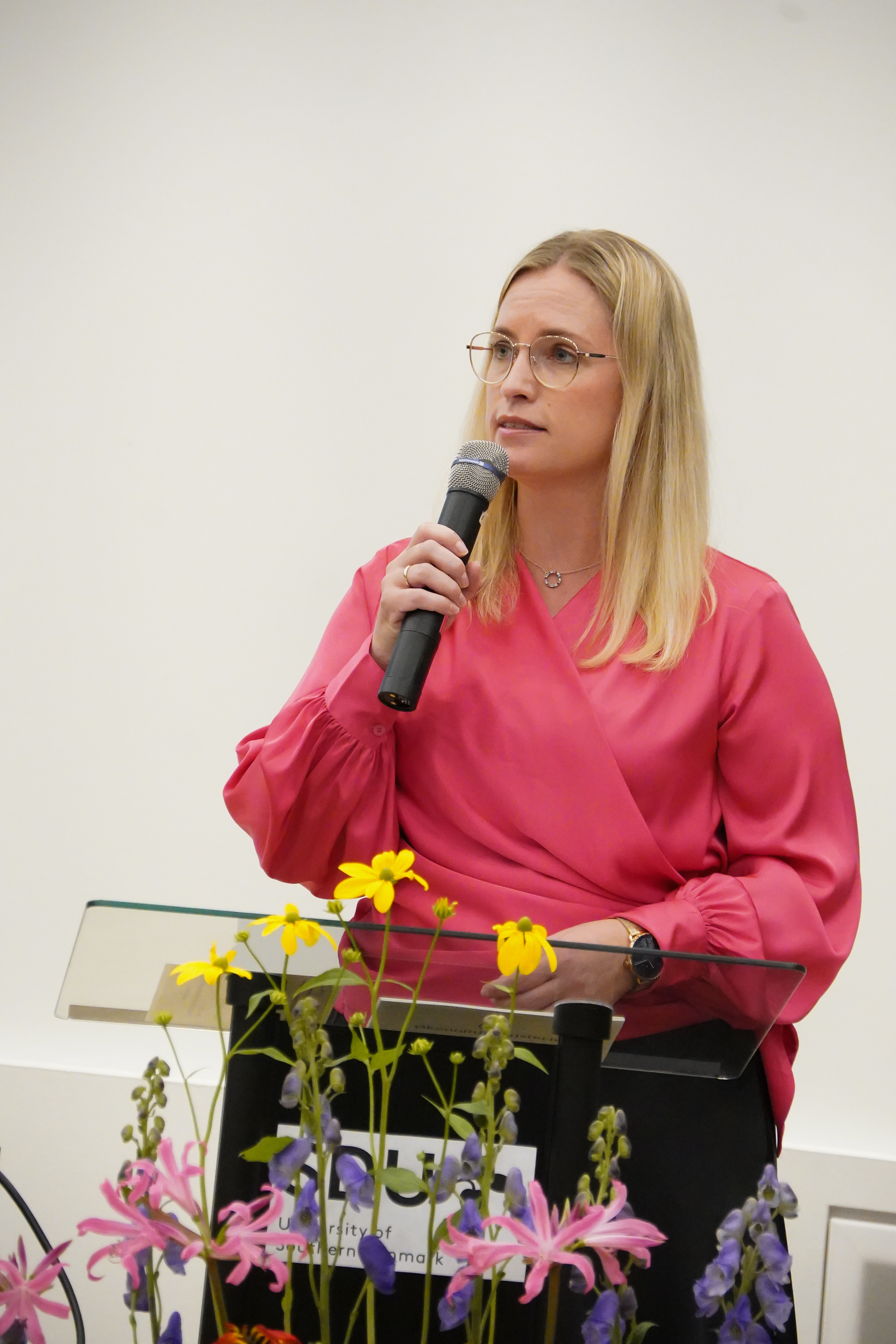 Efter de officielle taler blev der vist en videohilsen fra uddannelses- og forskningsminister Christina Egelund, og åbningsdagen blev afsluttet med reception og rundvisning på Campus Esbjerg.