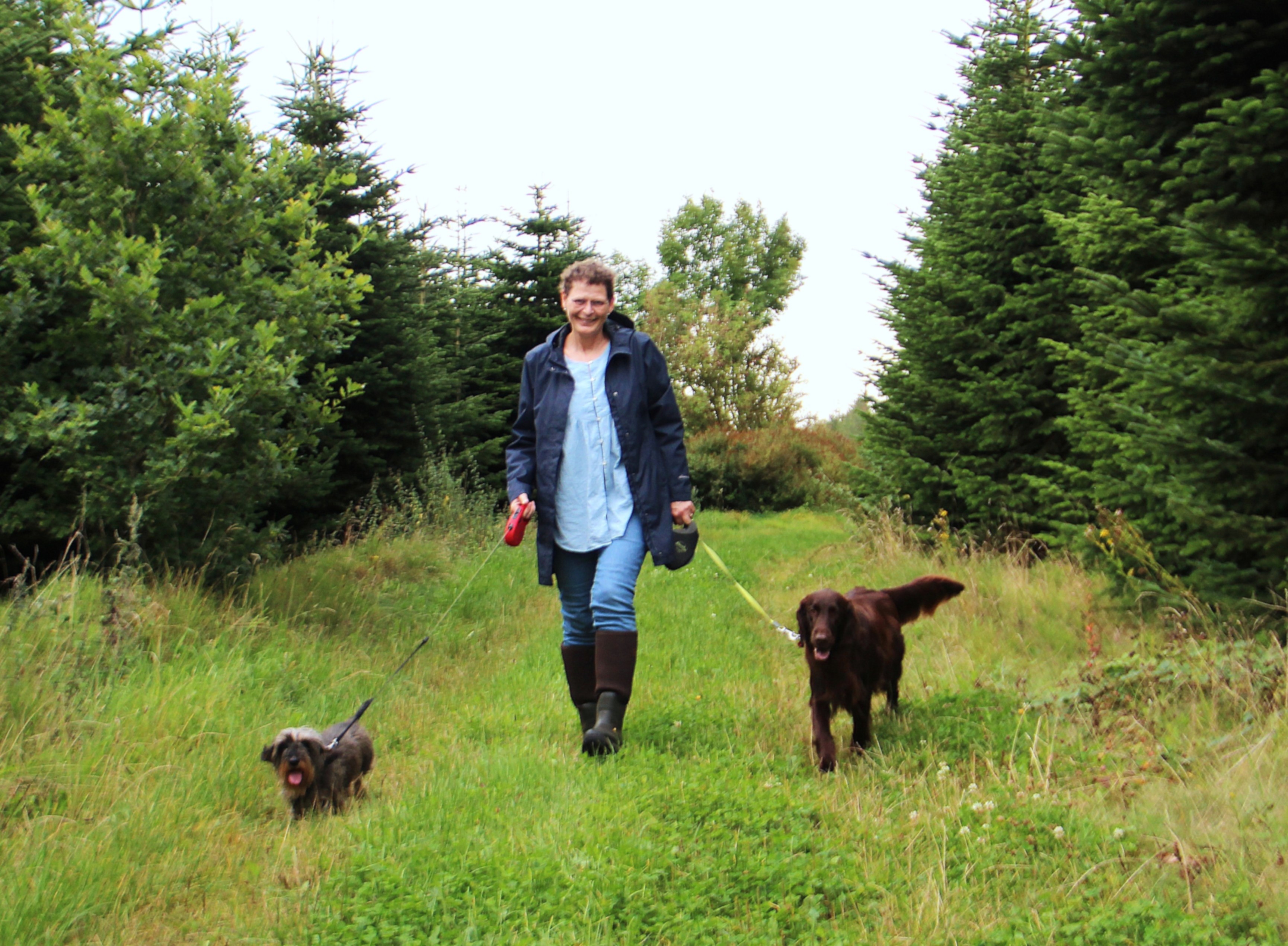Hun fortæller, hvordan selv en velkendt gåtur kan byde på nye indtryk for hendes to hunde, fordi vinden vender, eller fordi andre hunde eller mennesker har sat “duftspor” i mellemtiden.
