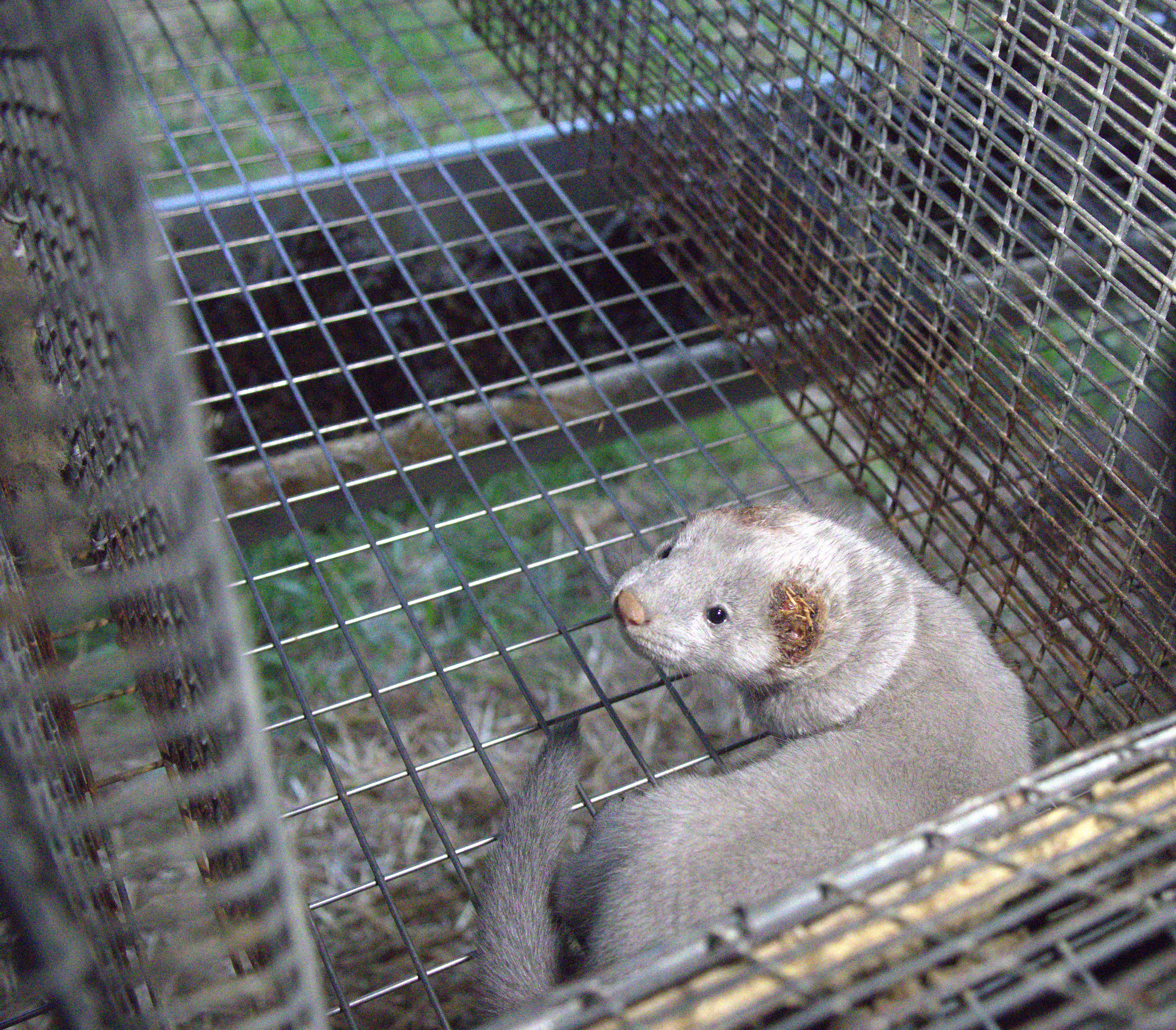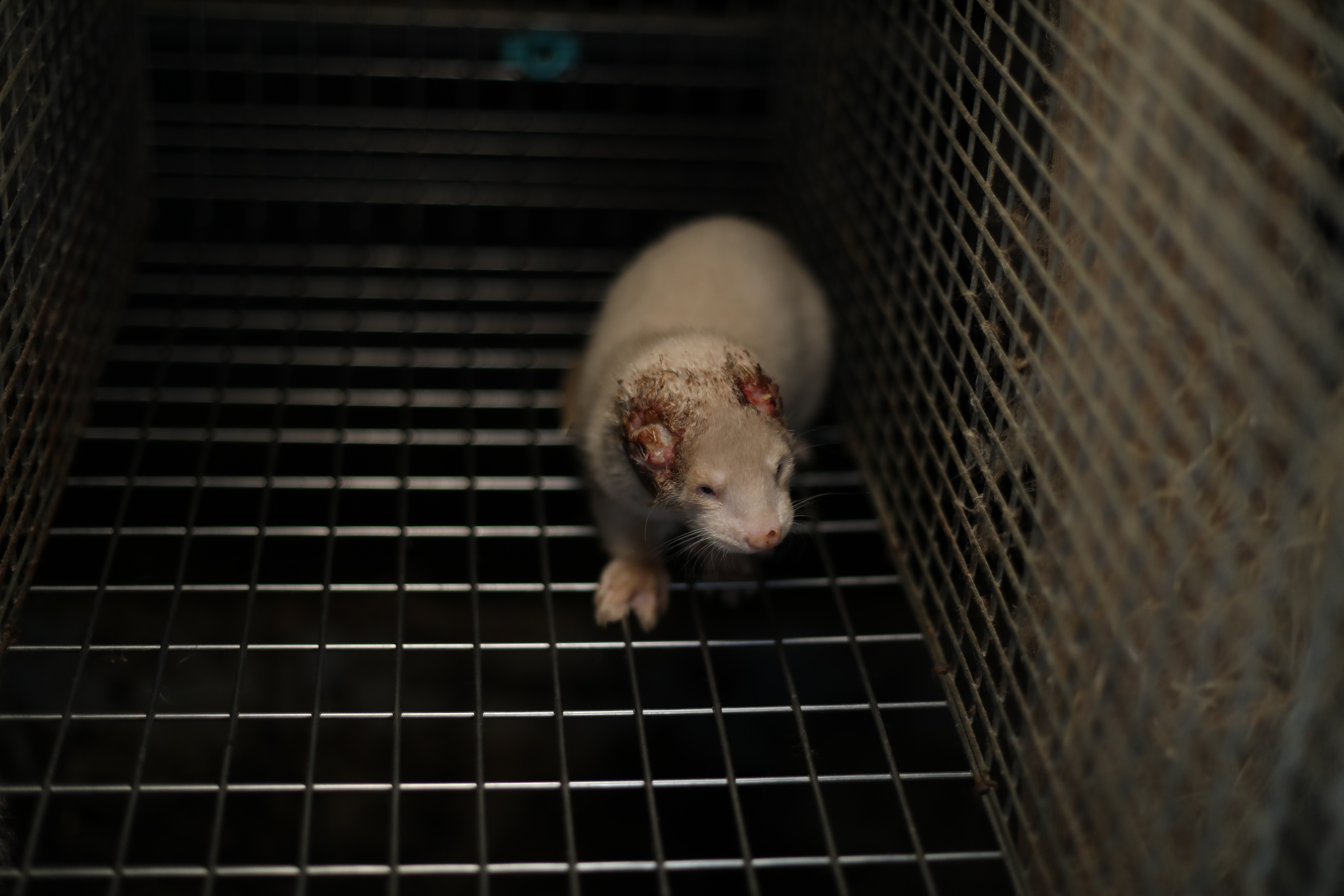 En mink kigger ind i kameraet med helt afgnavede ører. Tilbage er kun to store, blodige sår. Ved siden af ligger resterne af en død mink. På en anden mink er nakken helt blottet for pels, og såret er blodigt og beskidt af savsmuld. Det viser helt nye billeder fra en dansk minkfarm i Vestjylland.