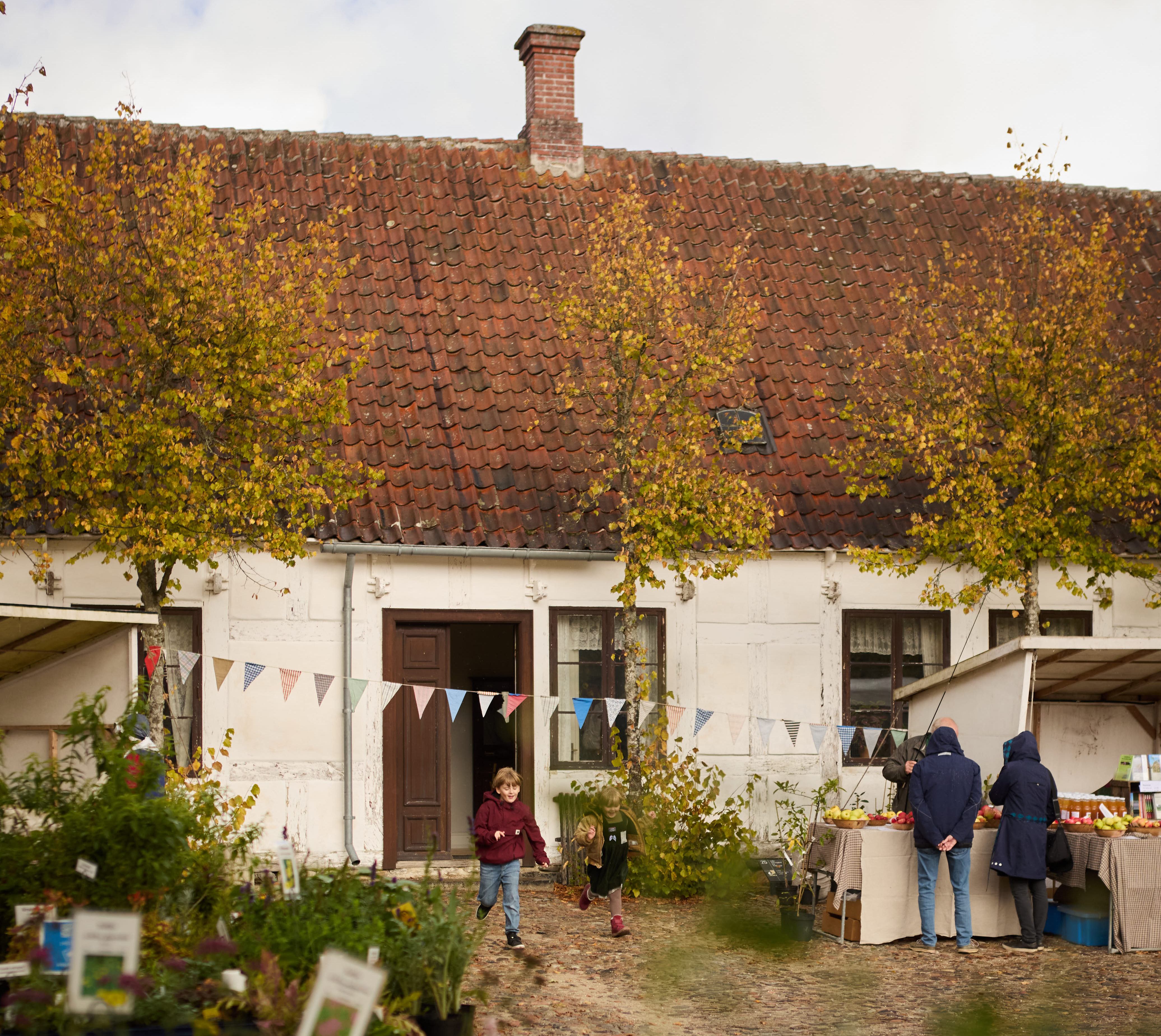 Sensommeren er en fantastisk tid. Dagene bliver kortere, lyset ændrer sig, vejret frisker op og bladene begynder at skifte farve - vi kan nærmest mærke skiftet i kroppen. På træerne hænger frugterne som smykker. Æbler, pærer, brombær, rønnebær. I 1700 og 1800-tallet var høstgildet årets klimaks og en kæmpe festdag. Karlene og pigerne gik i marken iklædt fint hvidt hør-tøj og når det sidste læs var kørt i lade, skulle der være gilde. Det var den tid, hvor man kunne høste frugten af årets benhårde markarbejde og nyde de forhåbentligt fyldte lader og spisekamre. Det er den stemning, Høstmarkedet på Frilandsmuseet vil emme af, når vi pynter op til fest og marked på gårdspladsen foran herregården.