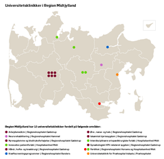 Region Midtjylland har 12 universitetsklinikker fordelt på følgende områder:
