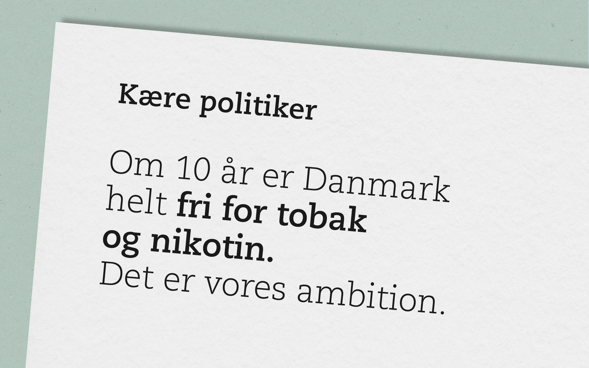 - Regeringen har sat en rigtig retning, men hvis vi skal forhindre flere unødvendige tobaksrelaterede dødsfald og undgå, at en ny generation af børn og unge bliver afhængige af nikotin, går det alt for langsomt. Vi opfordrer derfor politikerne til at tage det endelige opgør med de dybt sundhedsskadelige tobak- og nikotinprodukter, siger Jesper Fisker.