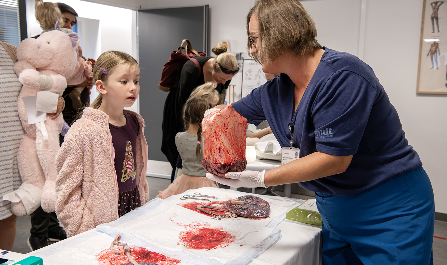 Børn og voksne kunne desuden få et unikt indblik i blandt andet fødslens forløb, blodprøvernes vej igennem systemet, dialysemaskinernes funktion og akutpatientens modtagelse på stuen.