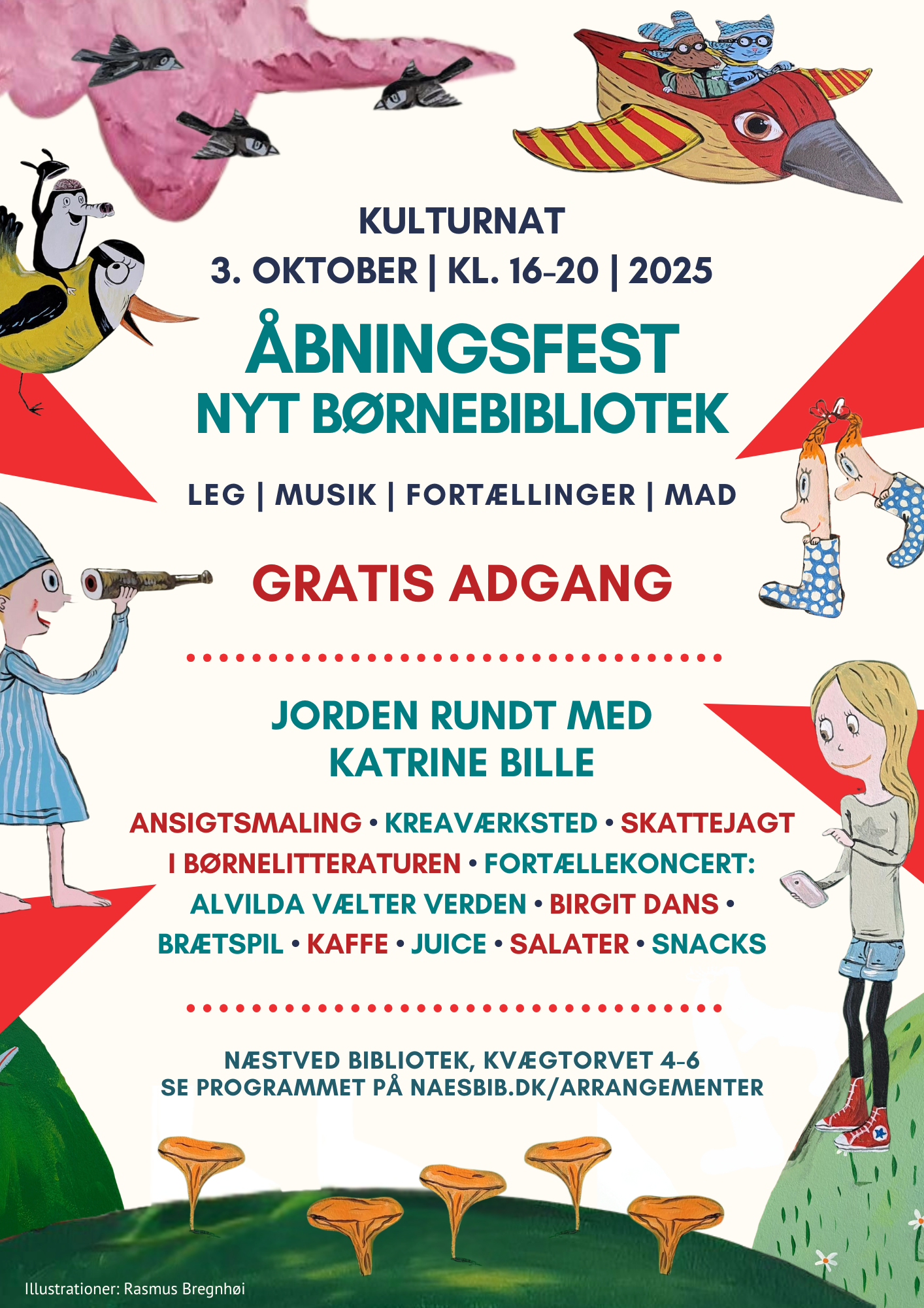 På Kulturnatten fredag den 3. oktober er der fest på Næstved Bibliotek. Vi indvier det nye flotte børnebibliotek, og alle er inviteret med. Festen varer fra kl. 16.00-20.00.