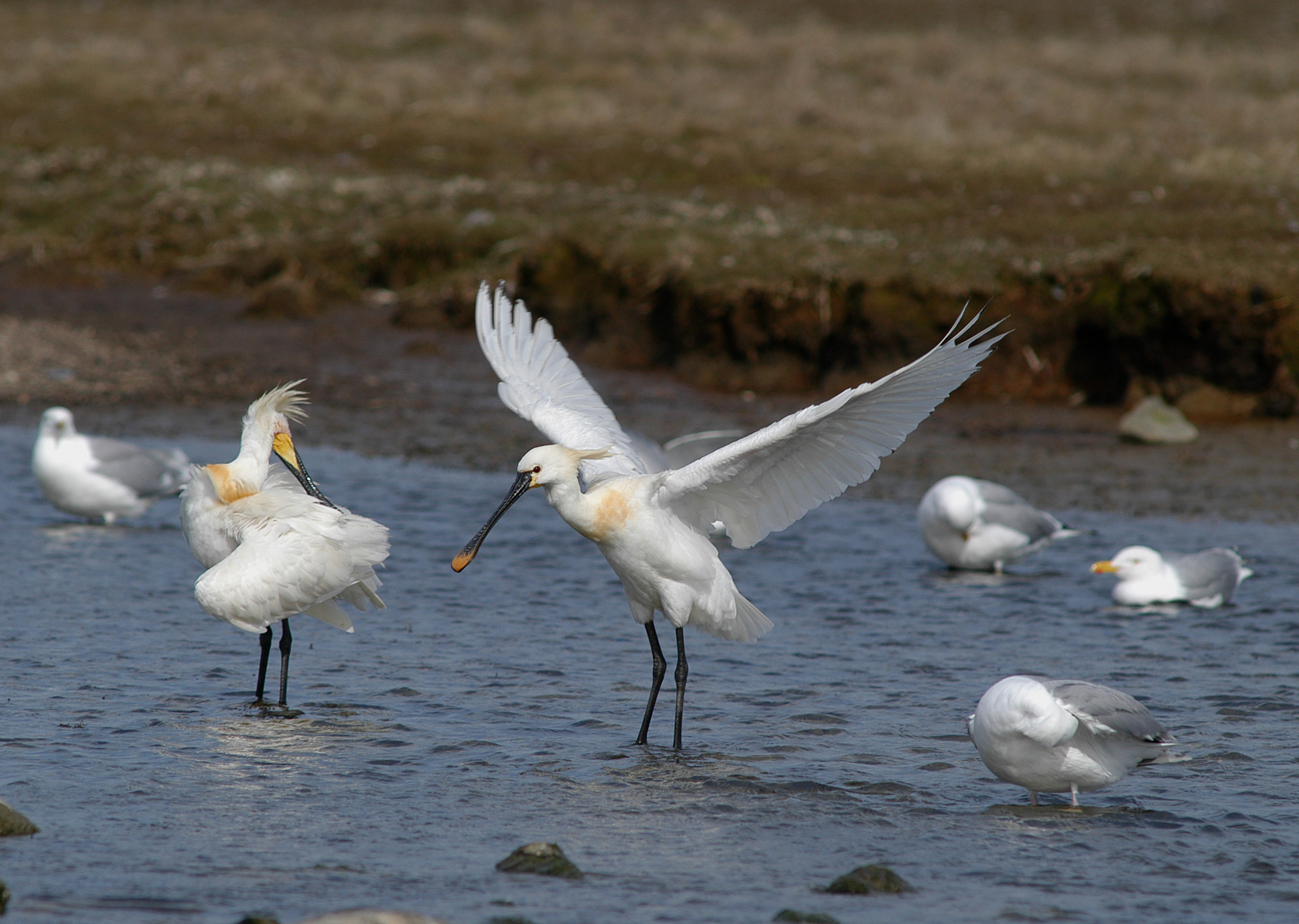 I disse dage færdes de danske skestorke i småflokke i føderige, lavvandede områder, hvor de søger føde, inden de trækker sydpå og følger Atlanterhavskysten til vinterkvartererne i Afrika.