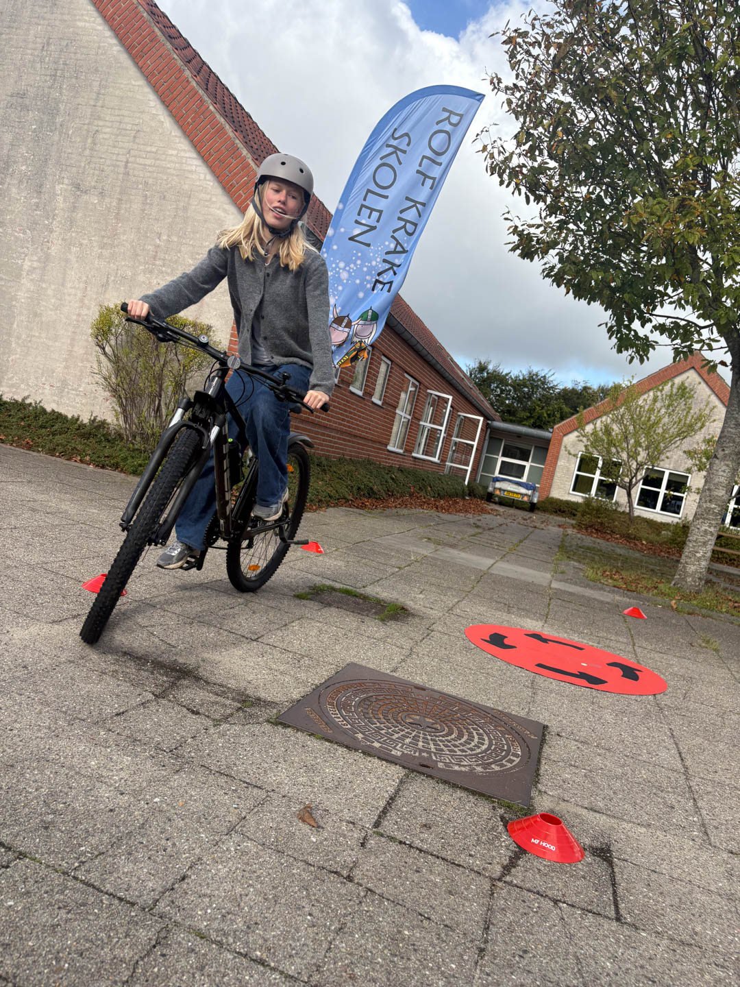 BILLEDREPORTAGE/HOLSTEBRO: På Rolf Krake Skolen er holdningen klar: flere elever bør cykle i skole. Med støtte fra GF Fondens Trafiklegat får eleverne nu mulighed for at øve sig i at cykle på en nyindkøbt cykelbane. Torsdag den 18. september blev banen indviet.