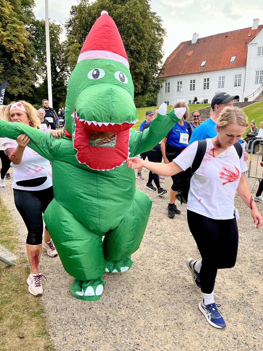 På billederne (nederst) er det bl.a. Akutafdelingen repræsenteret ved en dinosauer, der havde 'bidt lidt' i de øvrige deltagere.