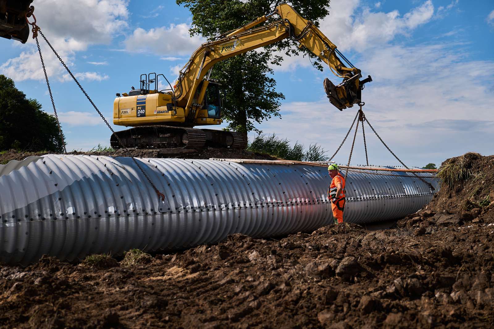 Særligt to forhold har gjort anlægsarbejdet til noget ud over det sædvanlige. Der har været ualmindelig langt fra den ene ende af byggepladsen til den anden, og den bløde jord har været en udfordring at arbejde i og på.