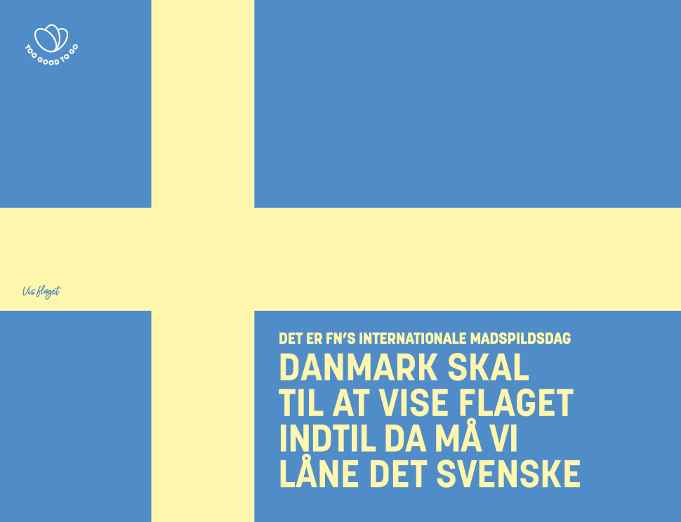 Blå-gule flag vil mandag den 29. september præge gadebilledet i København, når Too Good To Go markerer FN’s Internationale Madspildsdag. Med budskabet “Danmark skal til at vise flaget. Indtil da må vi låne det svenske” sætter virksomheden fokus på, at Danmark hører til bundskraberen i Europa, mens naboerne mod øst klarer sig langt bedre.