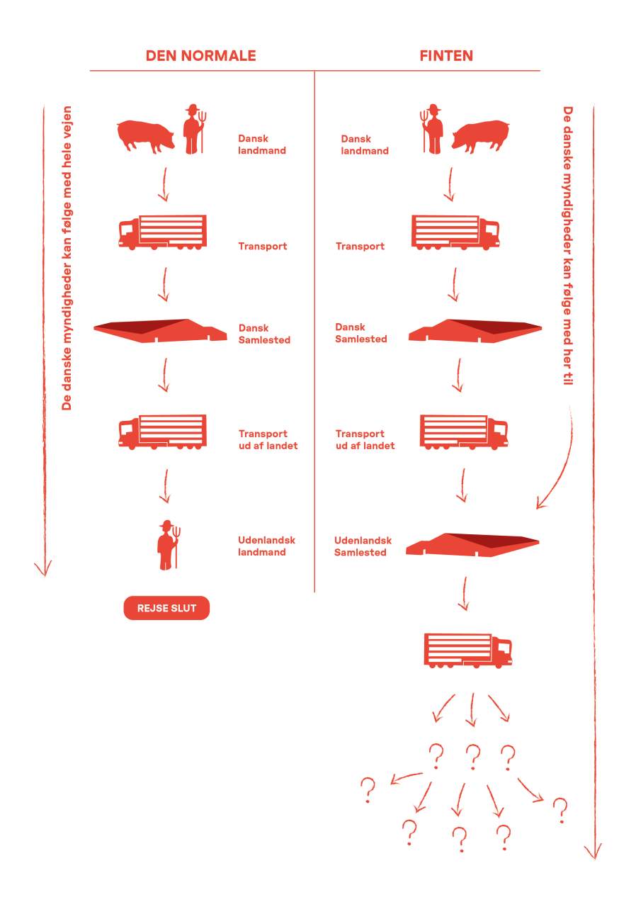 Når svineeksportørerne benytter sig af denne finte, har de danske myndigheder kun kendskab til og mulighed for at føre kontrol med en del af den samlede transport, når danske grise eksporteres. Det skal der sættes en stopper for, mener Dyrenes Beskyttelses direktør.