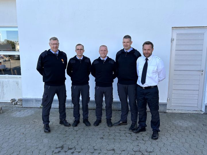Fem brandfolk – 1 Indsatsleder fra Beredskab Fyn, 1 holdleder og 3 brandfolk fra Falck i Glamsbjerg – modtog i dag Den Danske Redningsberedskabspris 2025 for deres enestående indsats under en alvorlig ulykke på Flemløse Biogasanlæg i november sidste år.