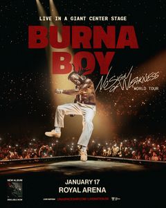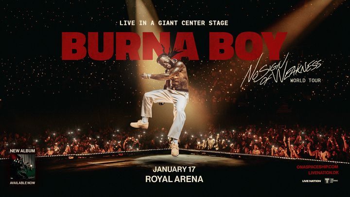 Den globale afro-fusion-sensation Burna Boy vender tilbage til Danmark med sit eget headline-show, når han indtager Royal Arena lørdag den 17. januar 2026. Efter flere mindeværdige optrædener på danske festivaler er han nu klar til at give publikum en fuld aften i sit eget univers. Med det spritnye album ‘No Sign of Weakness’ i ryggen og en række anmelderroste shows verden over, kan fans se frem til en aften i selskab med en af tidens mest visionære artister.