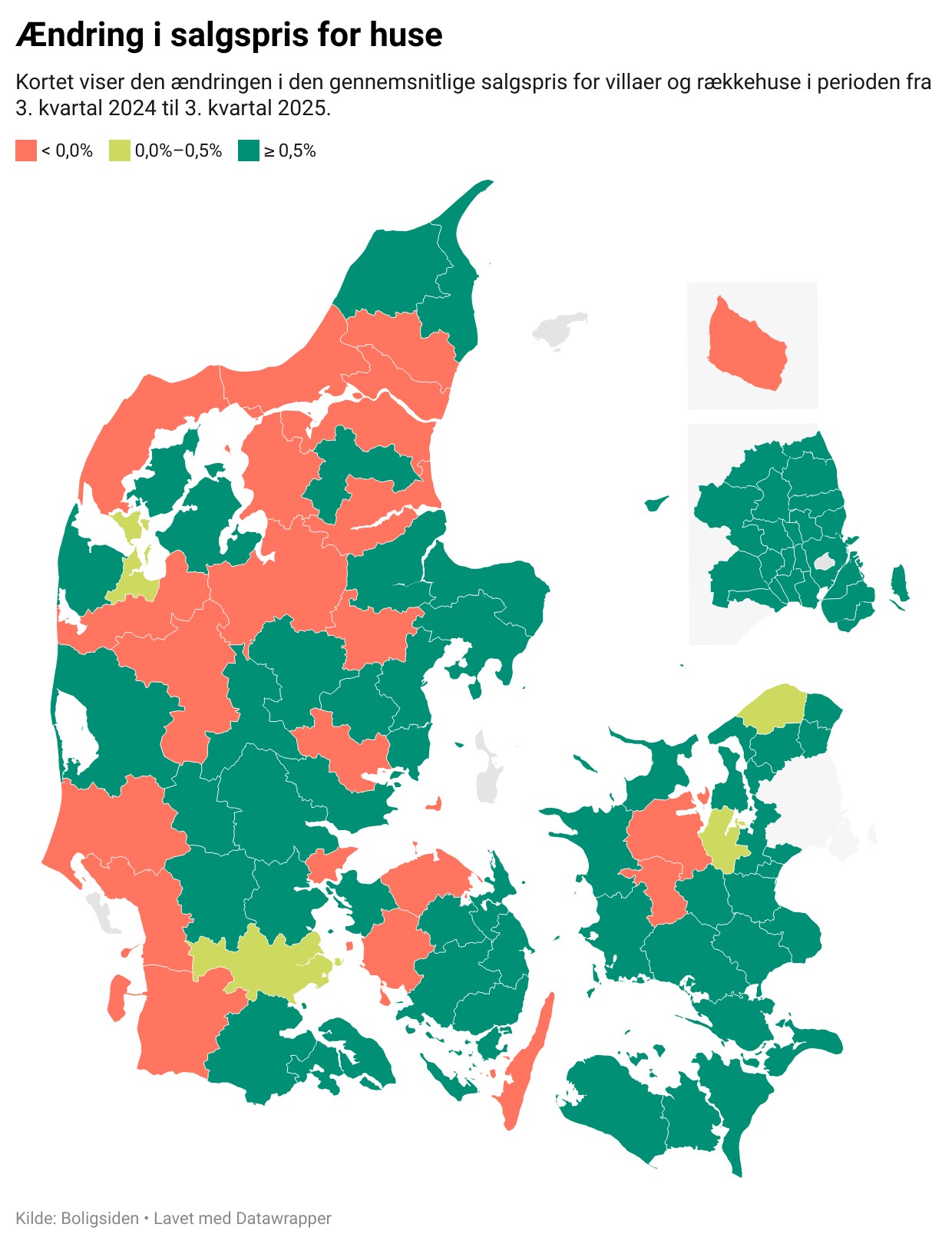 69 af landets kommuner har haft et stigende prisniveau for villaer og rækkehuse, når vi sammenligner 3. kvartal 2025 med samme periode sidste år.
