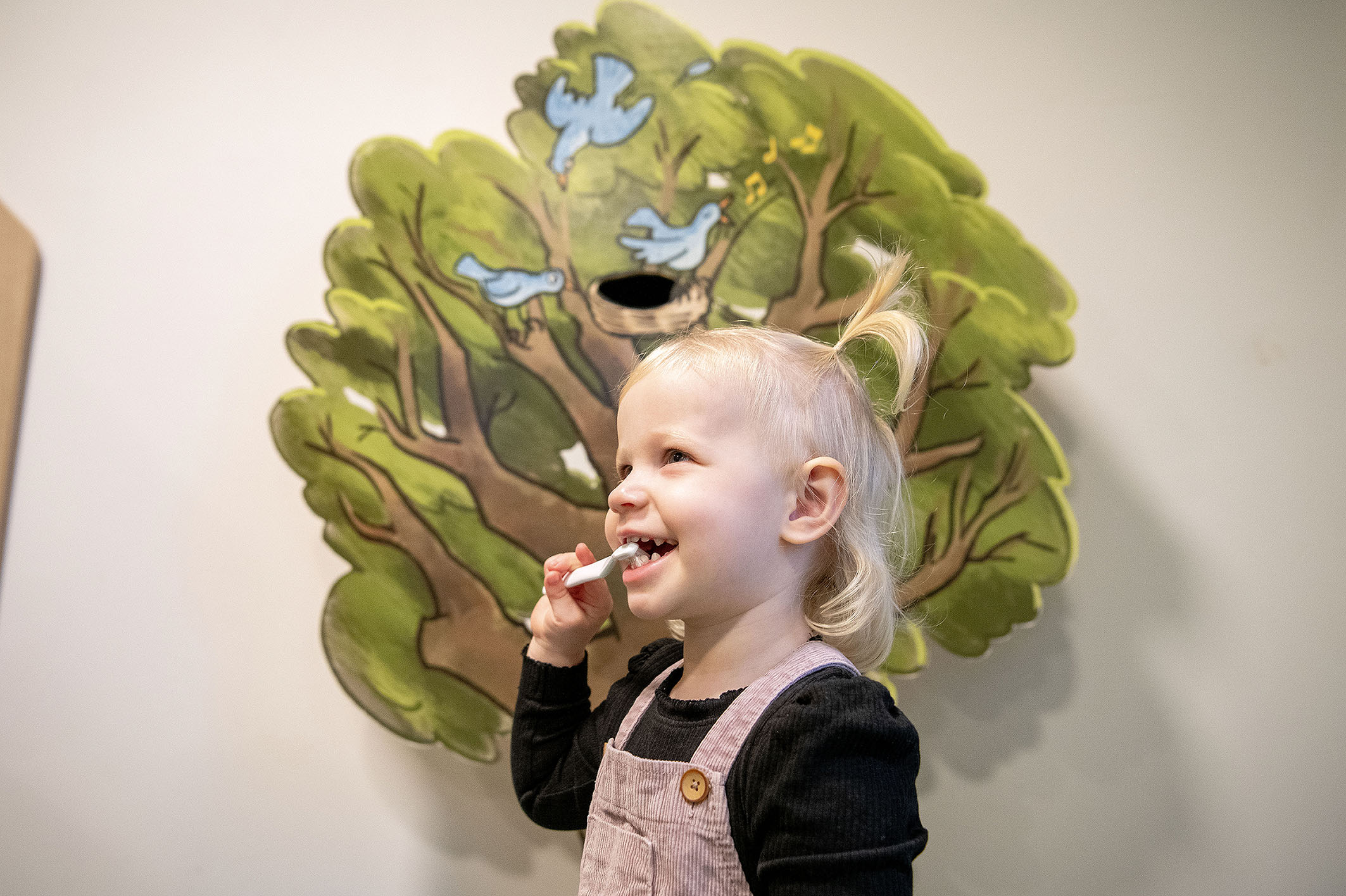 "Vi er ikke helt der endnu, hvor sutten skal væk. Men det er et godt sted at starte samtalen. Det bliver lidt mindre dramatisk og lidt mere magisk. Træet gør det nemt at relatere til stedet, hvor sutten engang skal hen, når man er et lille barn.”