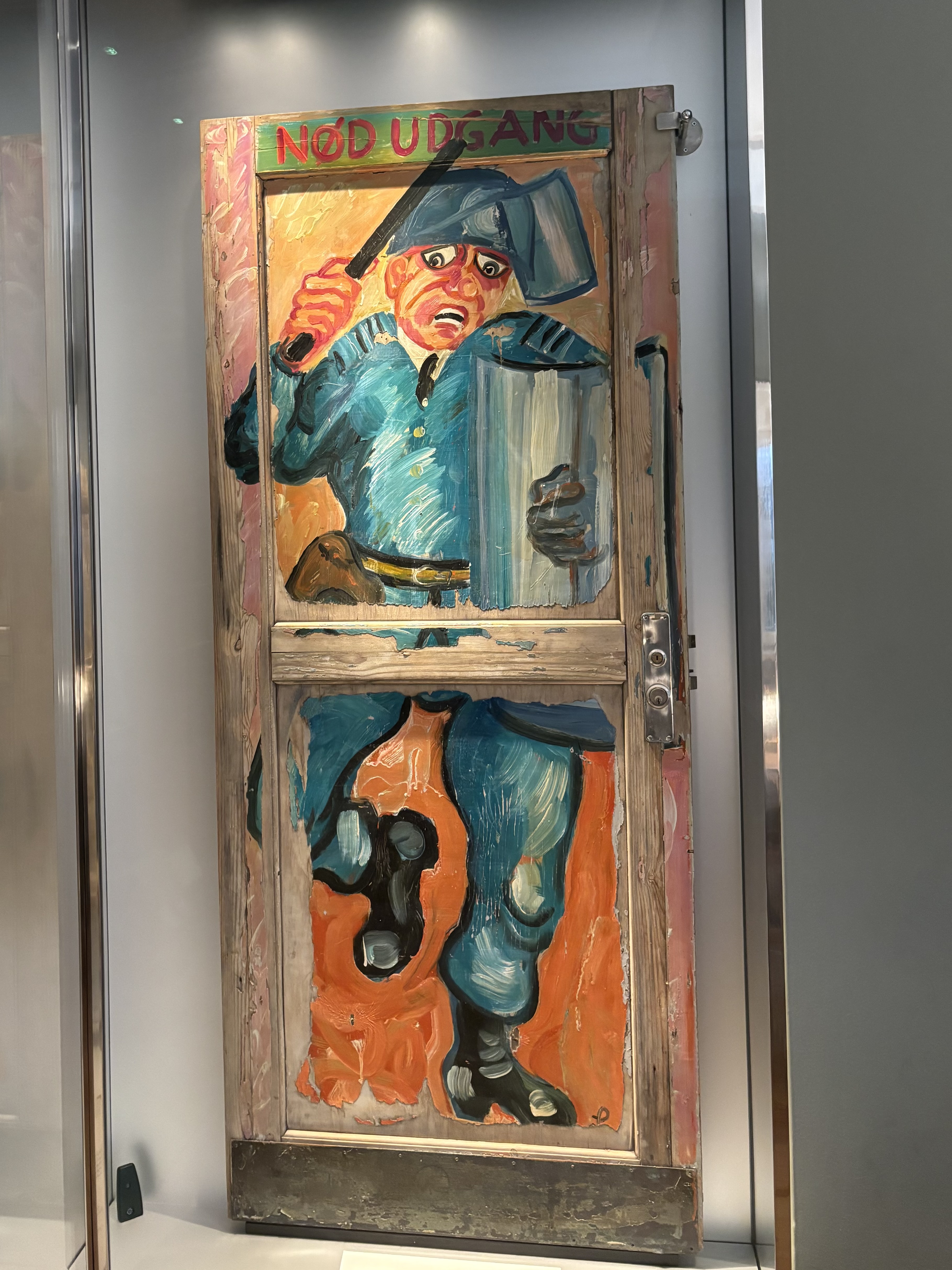 Fint malet dør fra Christiania kaldet Politiets nødudgang