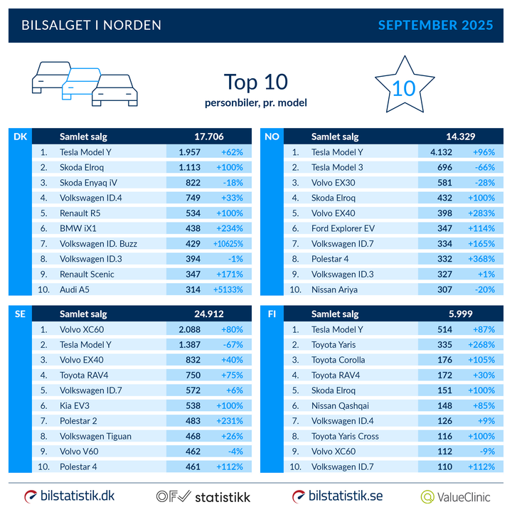 Elektrisk fremgang i nordisk bilsalg – men svenskerne advarer Danmark12.9.2025 07:00:00 CEST | Pressemeddelelse