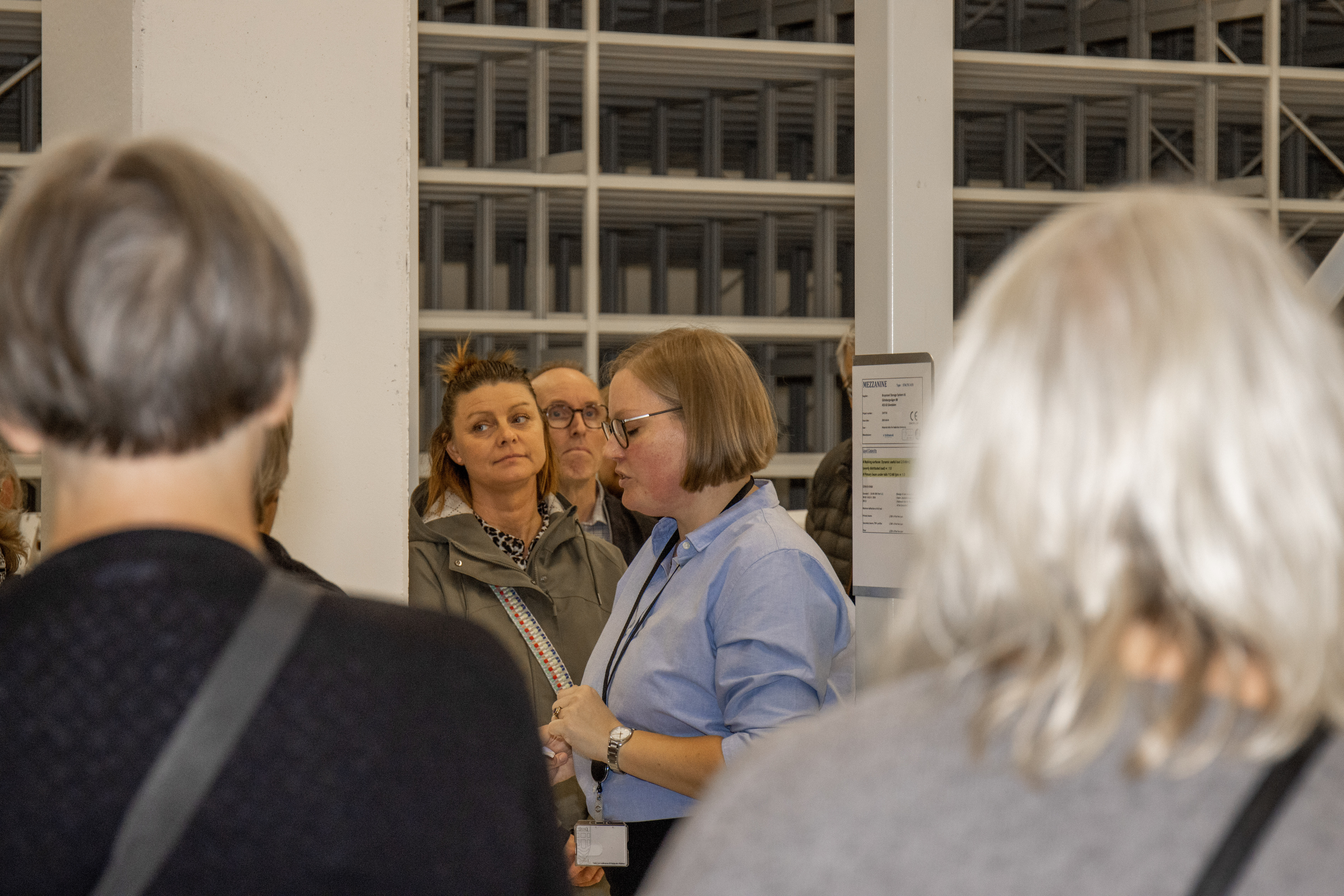 Arkivar Sidsel von Qualen giver rundvisning til gæsterne i det nye magasin.
