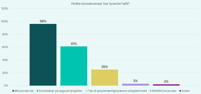 Ny medlemsundersøgelse fra TEKNIQ viser, at 96 procent af virksomhederne oplever økonomiske tab som følge af tyverier, mens 61 procent må se projekterne blive forsinkede, når de er udsat for tyveri.