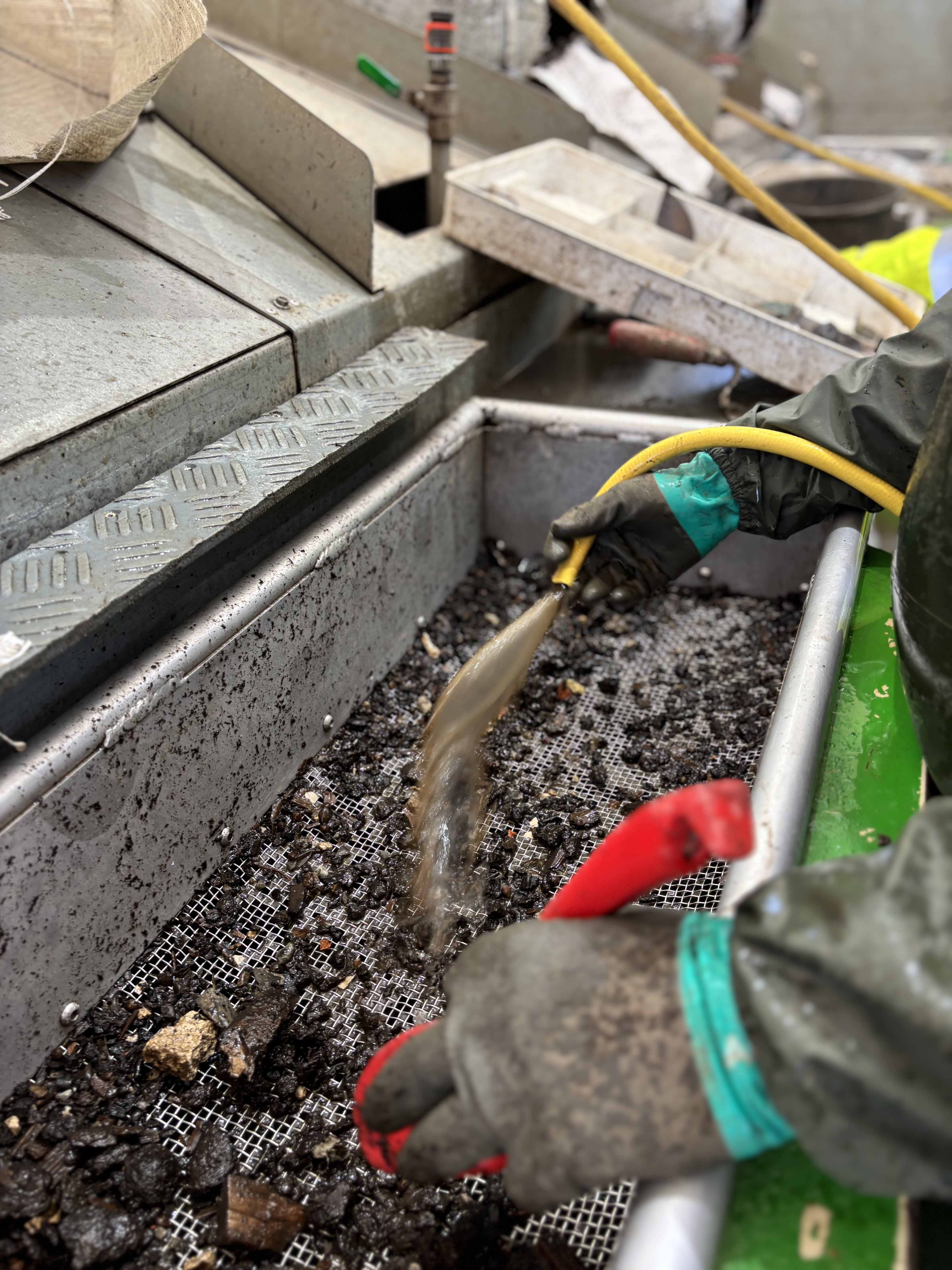 Hver eneste genstand – fra bittesmå tekstilrester til mønter og keramik – bliver reddet ud af jordlagene. Selvom det meste er fra1650-1750’erne, hvor området fungerede som byens losseplads, så er der nederst et stenalderlag med grus og sten fra 6000-4000 år før Kristi fødsel. Stenalderlaget stammer formentlig fra bosættelser langs den daværende kyst.