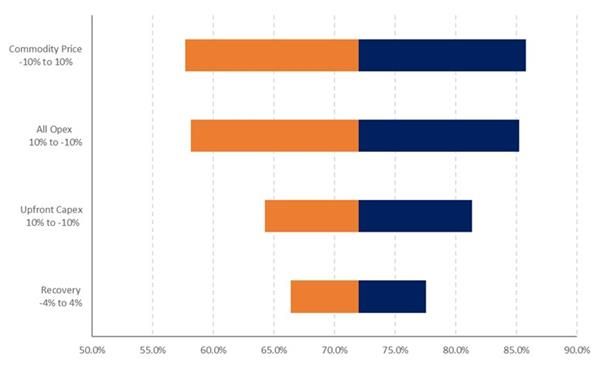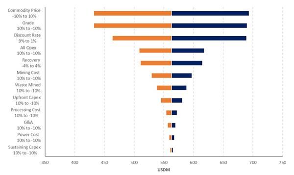 Estimated NPV sensitivities for key operating and economic metrics are presented in Figure 3.