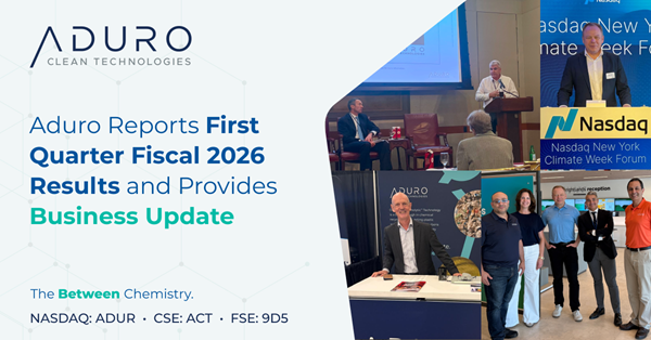 “Aduro has continued its momentum towards commercial readiness, making strong progress over the first quarter of fiscal 2026,” said Ofer Vicus, Chief Executive Officer of Aduro. “We made headway on construction of our Next Generation Process (“NGP”) Pilot Plant, positioning the project for the start of commissioning activities, which we commenced in September. We also laid the groundwork for the Demonstration Plant program, beginning a global site-selection process post quarter-end, with a focus on locations across Canada, Europe, and Mexico. We also completed initial testing of synthetic turf waste as a potential feedstock for our proprietary Hydrochemolytic™ Technology (“HCT”). With the addition of key leadership, deepening of industry partnerships, and increased visibility through technical and investor engagements, Aduro is well-positioned as we continue through the second quarter of fiscal 2026.”