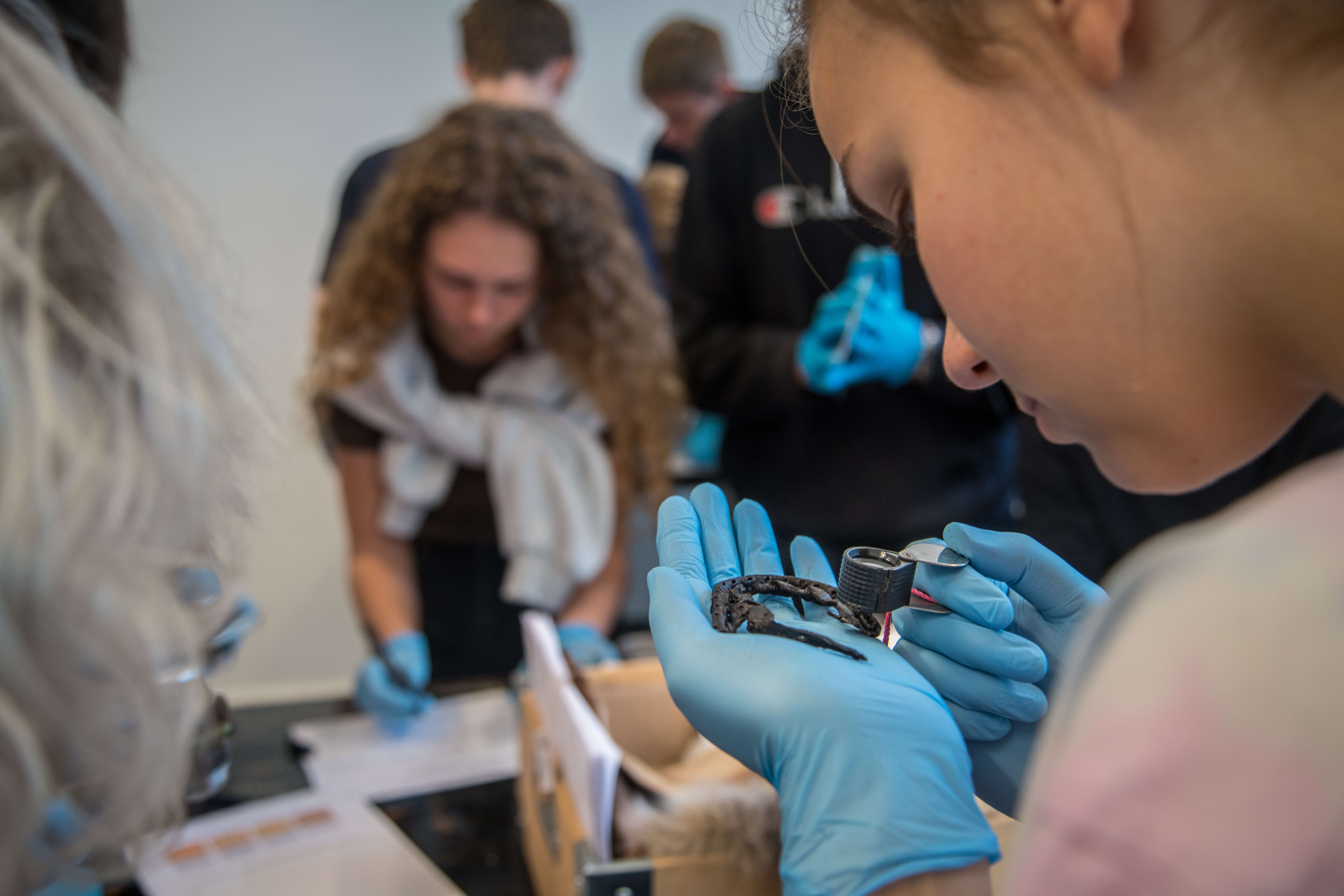Unge undersøger arkæologisk materiale i Next Generation Lab