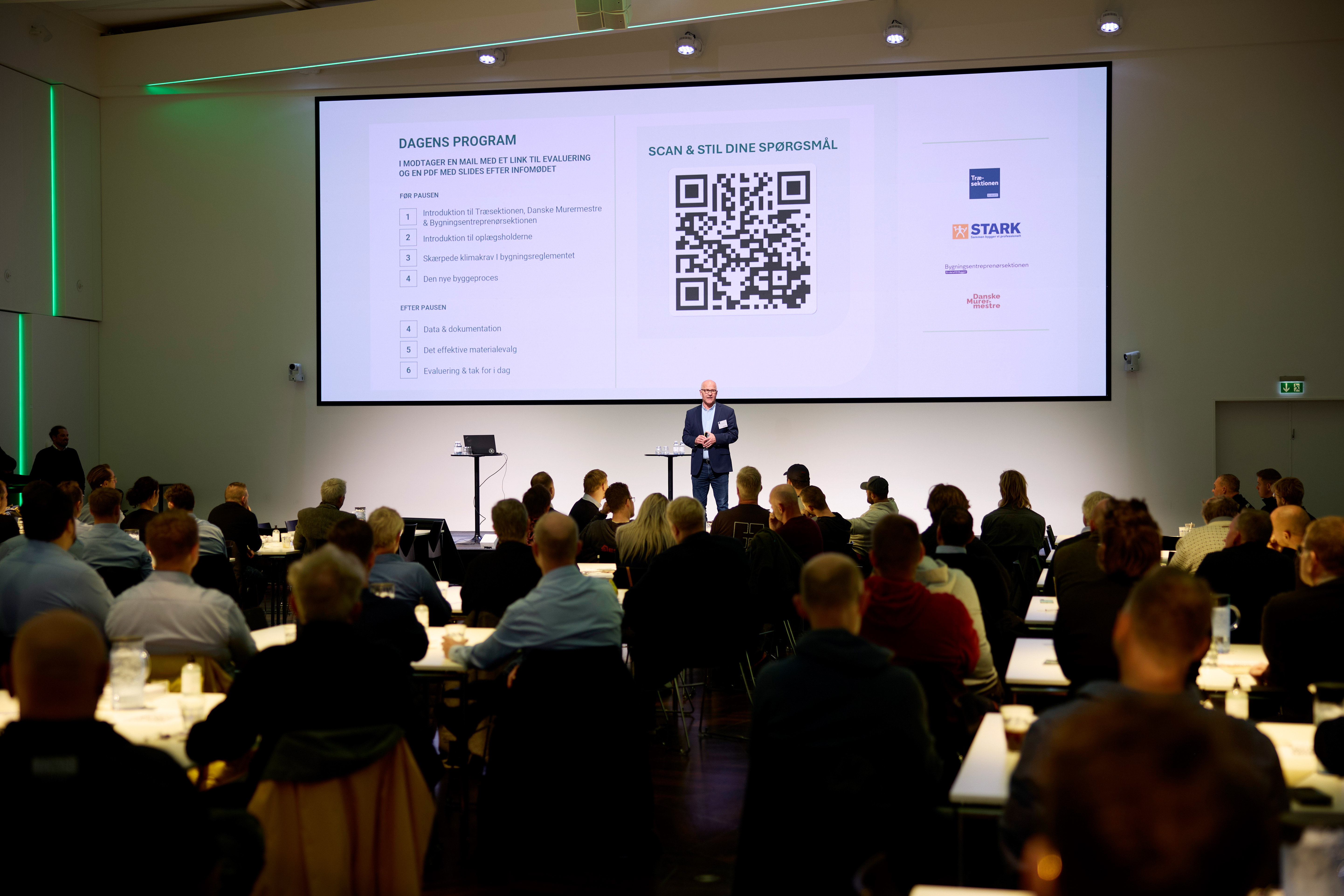 Bag infomødet stod Træsektionen og Bygningsentreprenørsektionen fra Dansk Industri samt STARK og Danske Murermestre. Mødet markerede endnu et skridt i indsatsen for at klæde byggebranchen på til fremtidens krav – og viste, at vidensudveksling og dialog er vejen frem, når klimakravene strammes.