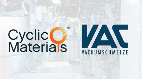 VAC produces neodymium-iron-boron (NdFeB) rare earth magnets, which are essential to automotive, defense, industrial and renewable energy applications. Through this extended agreement, VAC also strengthens its commitment to circularity with the option to reintegrate recycled Mixed Rare Earth Oxides (rMREOs) from Cyclic Materials into its own production processes.