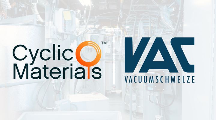 Cyclic Materials, the advanced recycling company creating a circular supply chain for rare earth elements (REEs) and other critical materials, today announced an expansion of its partnership with VACUUMSCHMELZE (VAC), a leading developer of magnetic materials and solutions.