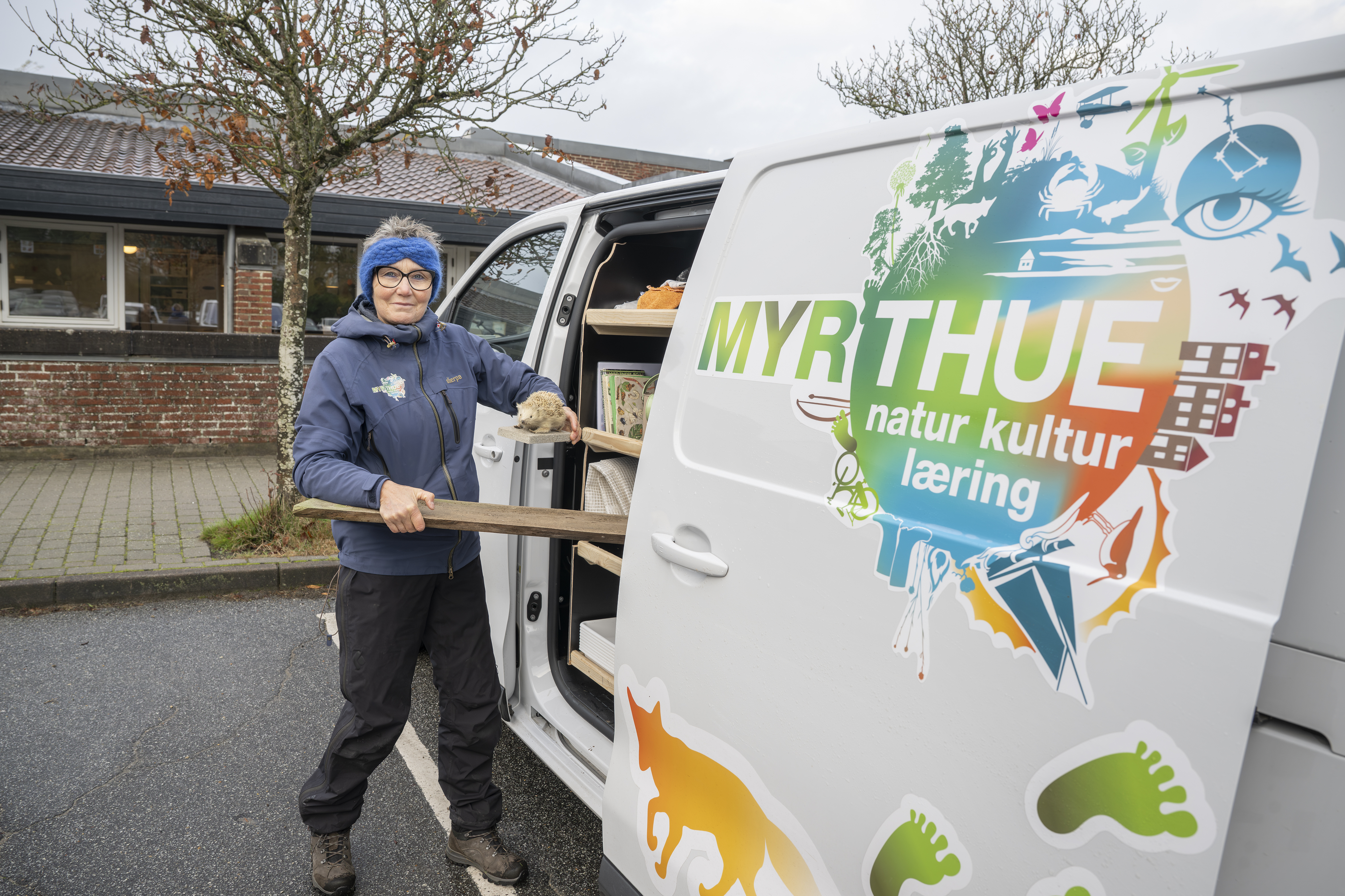 Det hele kan lade sig gøre, fordi Dagtilbud har prioriteret naturen som indsatsområde, og Nordea-fonden gavmildt har doneret støtte til indkøb af en el-varebil, som naturvejlederne fra MYRTHUE kan transportere grej i, når de kører ud til daginstitutionerne.