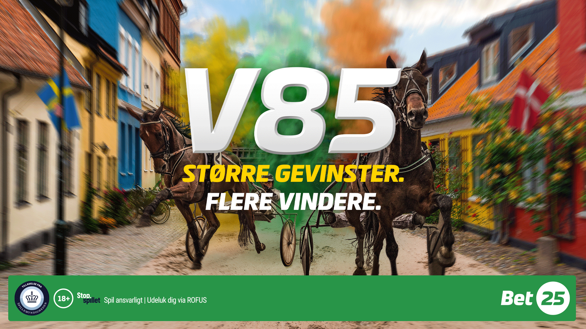 Hos Bet25 – væddeløbssportens spilleselskab – kan man spille V85 på få sekunder via Lynspil, hvor systemet automatisk udvælger hestene for dig. Spillet har 60 millioner kroner i puljen, og spilstop er kl. 16.10. Premieren afvikles på Jägersro, og det er kun hos Bet25, man kan spille med om millionerne.
