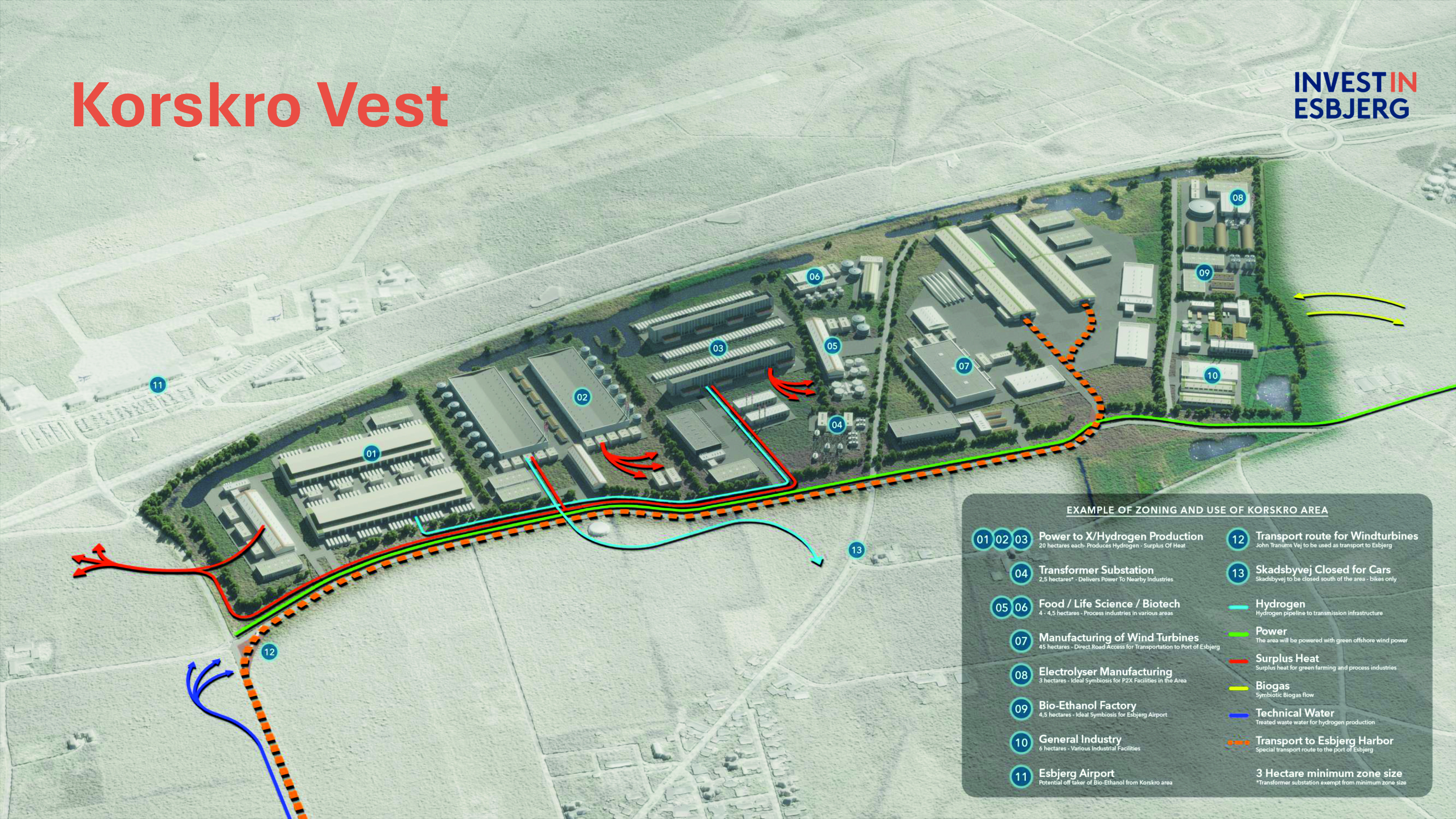 Den nye industripark placeres ved Korskro Vest, hvor Esbjerg Kommune gennem flere år har arbejdet målrettet på at skabe et attraktivt, byggemodnet og strategisk placeret erhvervsområde. Korskro Vest dækker 165 hektar med mulighed for udvidelse til 230 hektar og ligger ideelt ved E20, tæt på Esbjerg Lufthavn og blot otte kilometer fra Esbjerg Havn, som er en af Nordeuropas vigtigste udskibningshavn for vindmøller.