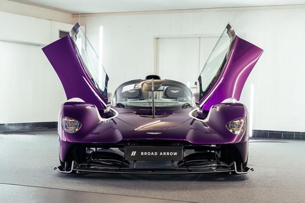 - The Gloss Storm Purple 2024 Aston Martin Valkyrie Spider, pictured during Broad Arrow's Zurich Auction preview at the Dolder Grand