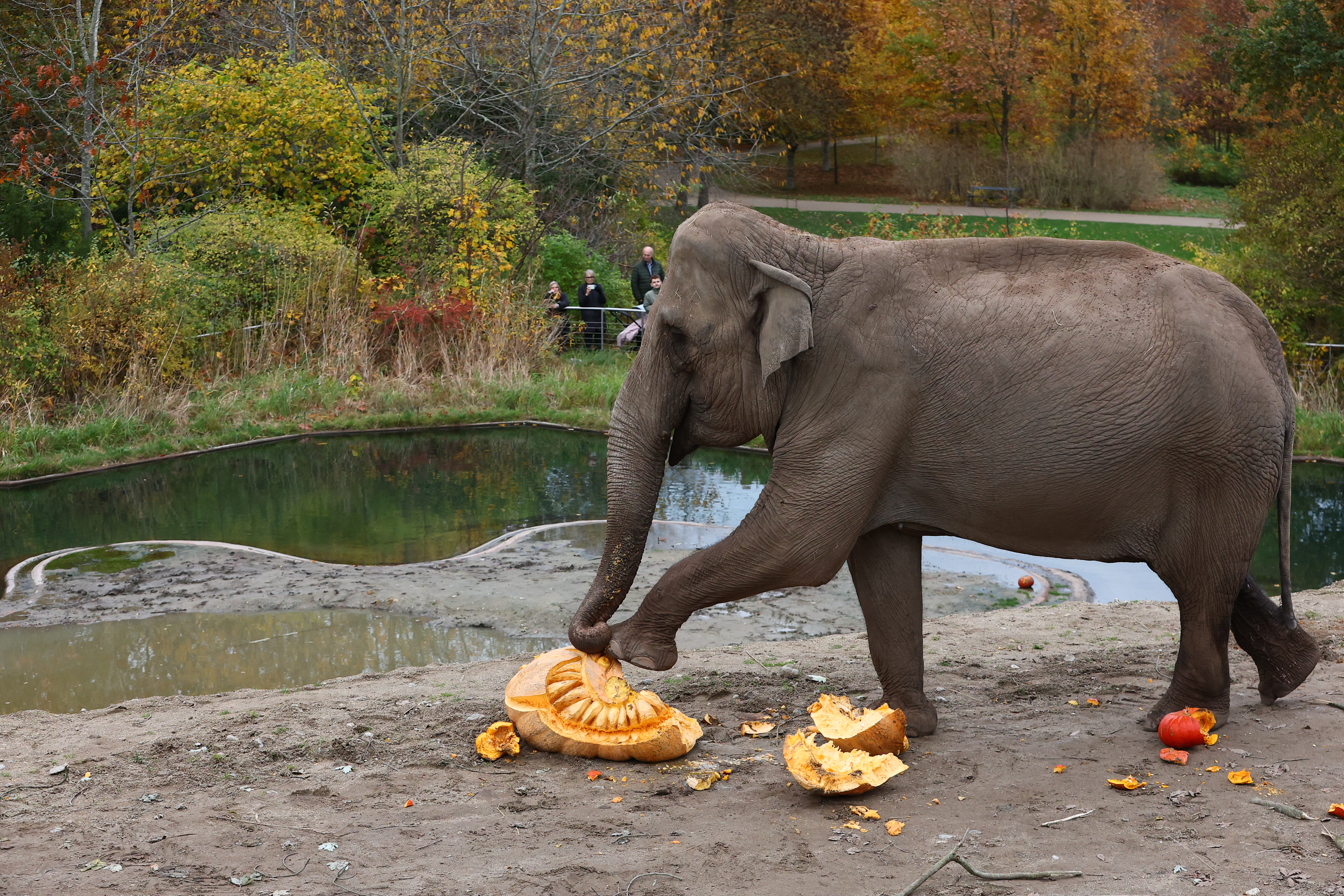 De mange gæster, der var mødt op kunne således se elefanterne trampe de store græskar i stykker, og her træner de blandt andet forskellige teknikker, når de leger med og derefter kvaser græskarrene med snabel og fødder. Oveni får de en god snack ud af det.