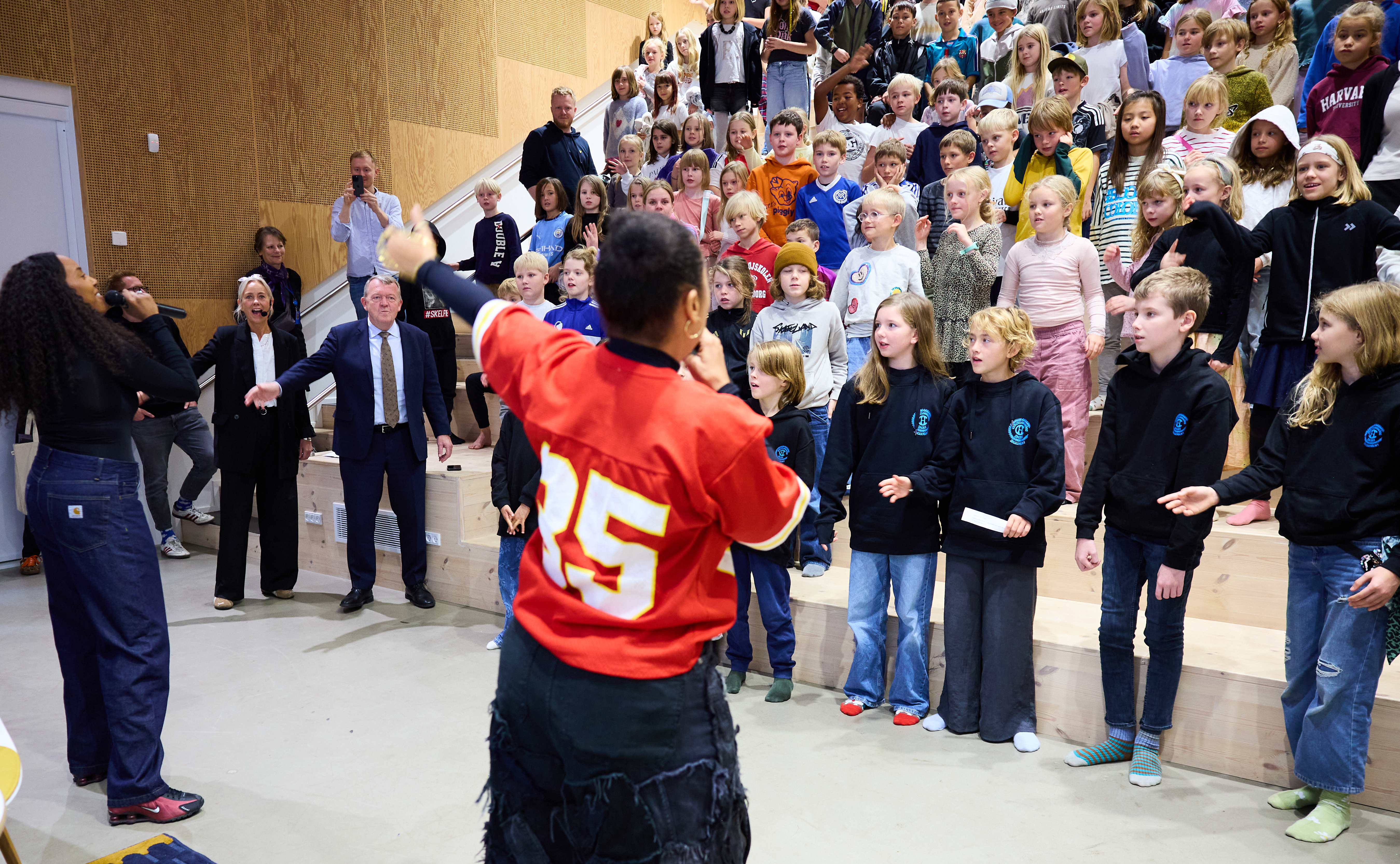 Startskuddet lød på Christianshavns Skole, hvor 3. og 4. årgang lyttede nysgerrigt, da udenrigsminister Lars Løkke Rasmussen, PlanBørnefondens direktør Dorthe Petersen samt sanger og rapper Karen Mukupa og FVN tog hul på årets store skoleturné med Børnenes U-landskalender 2025.