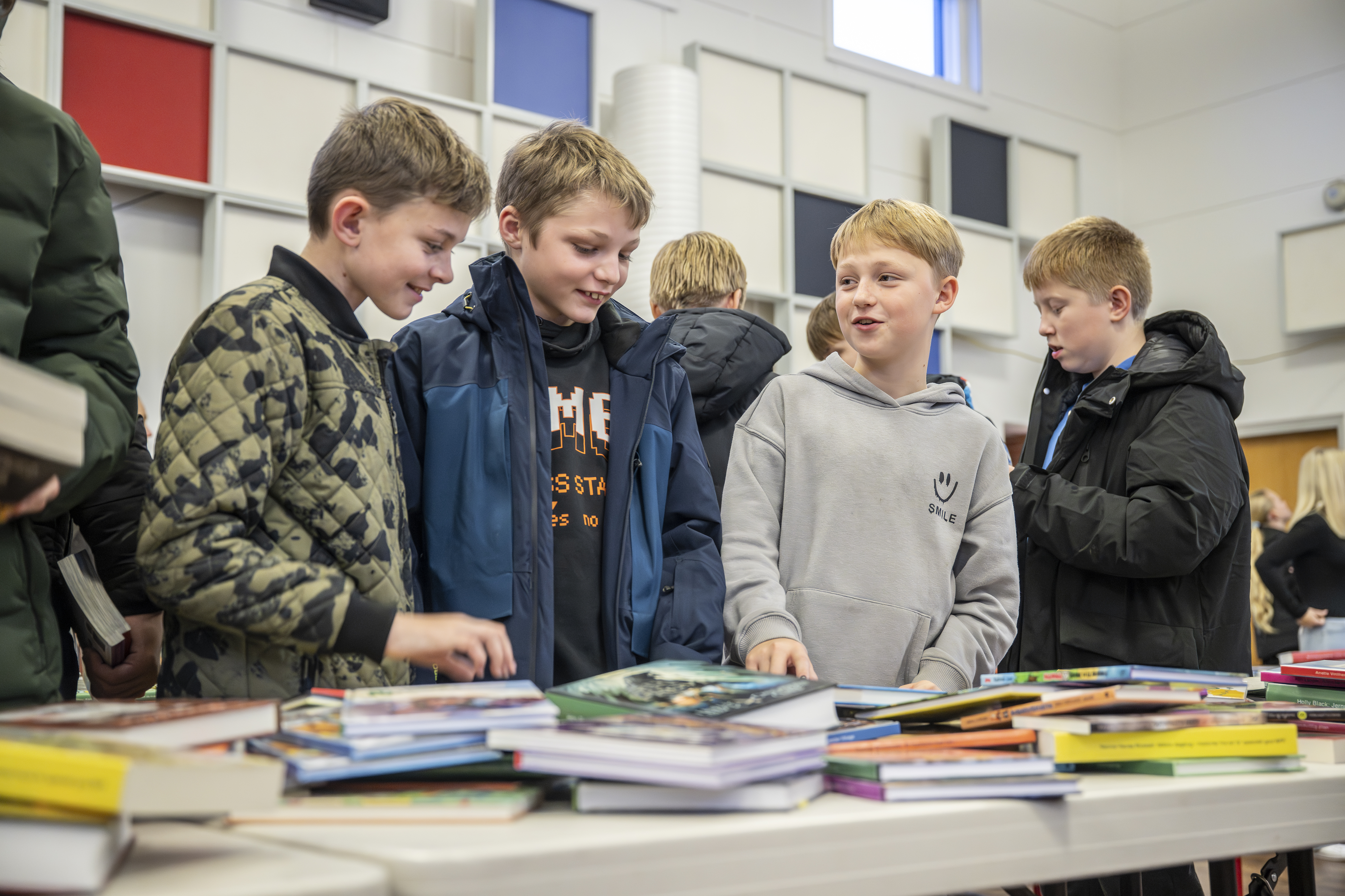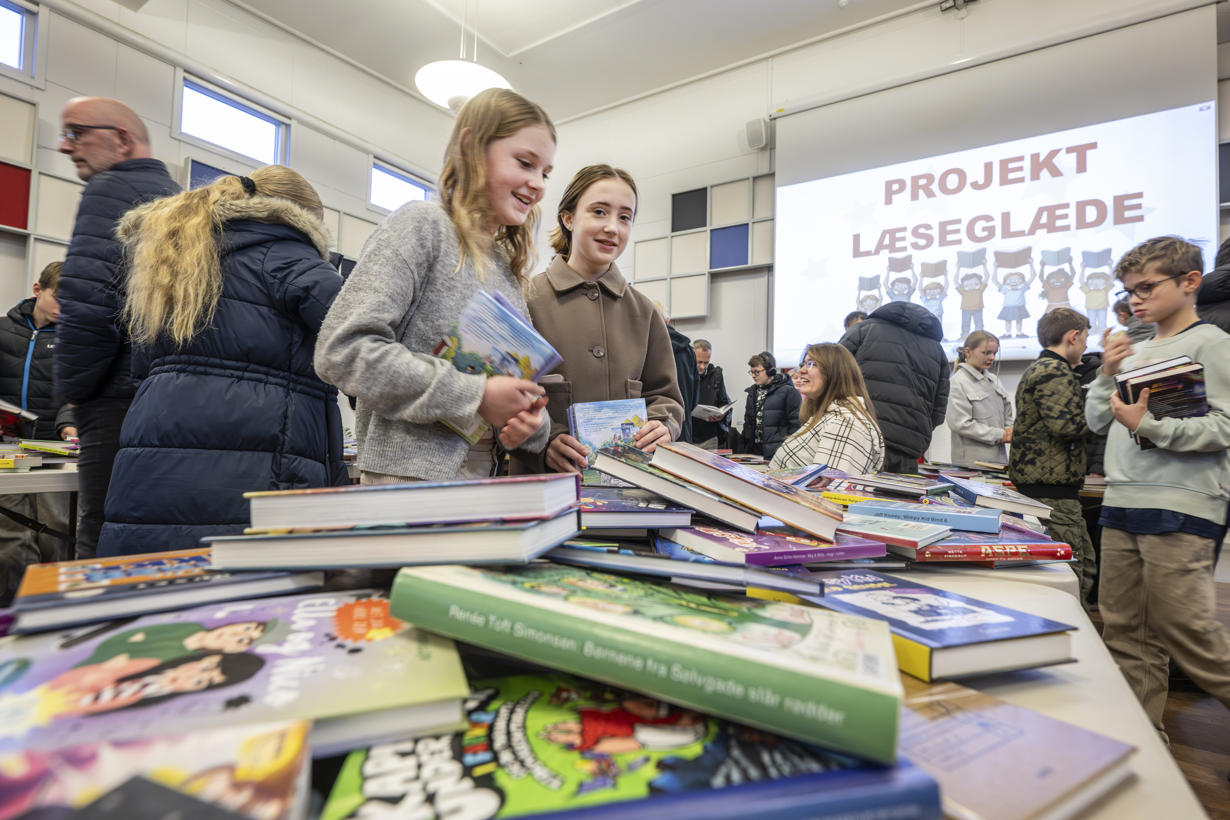 Kassevis med nye bøger er for nyligt landet hos 13 folkeskoler i Esbjerg Kommune. Bøger, som eleverne selv har valgt, og som de nu kan få i hænderne og låne med hjem. På Vitaskolen i Esbjerg fejrede elever, lærere og forældre ankomsten af de mange nye bøger med en fernisering.
