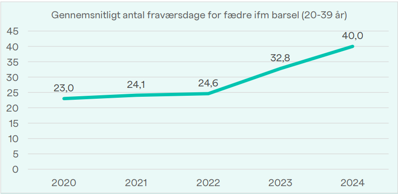Siden 2020 er antallet af barselsdage for fædre mellem 20 og 39 år i det tekniske erhvervsliv næsten fordoblet – fra 23 til 40 dage, viser analysen fra TEKNIQ. Samtidig bliver flere fædre hjemme, når børnene er syge. Andelen er steget fra 17,4 procent til 21 procent i samme periode.