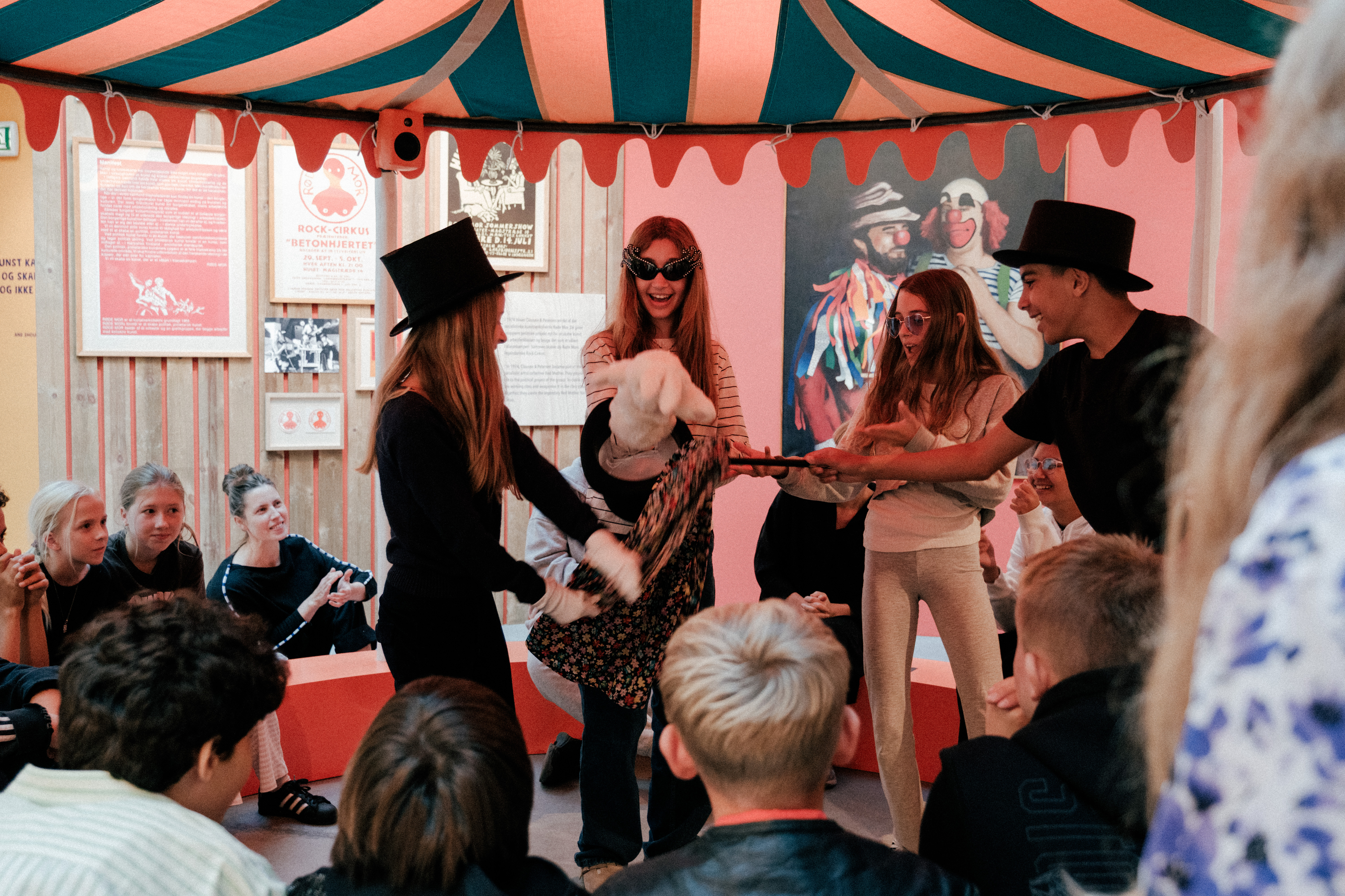 Over 1.000 elever fra grundskolens mellemtrin deltager i gratis undervisningsforløb i Leif Sylvester-udstillingen på Arbejdermuseet. Foto: Malthe Ivarsson. Arbejdermuseet 2025
