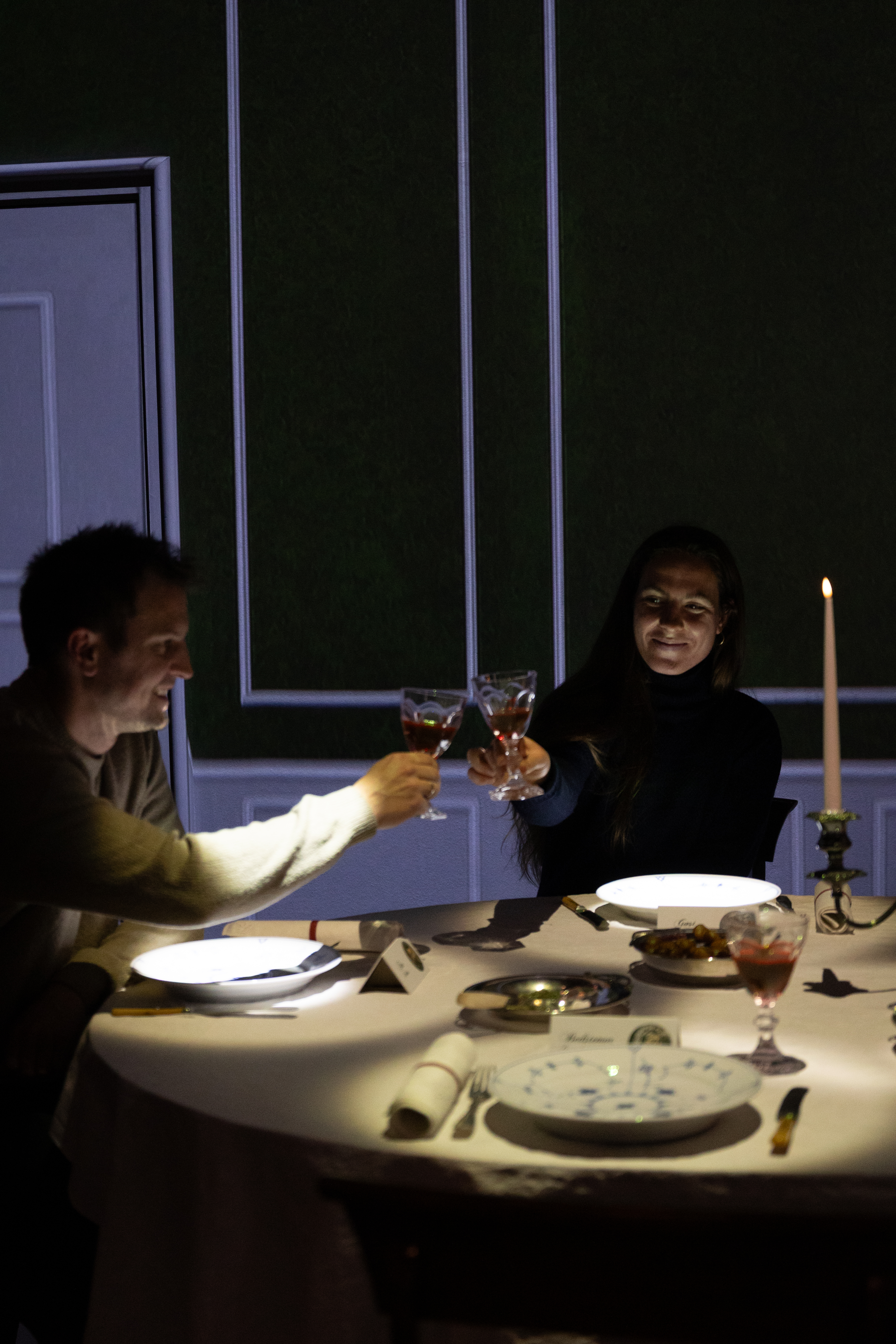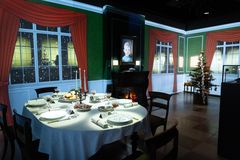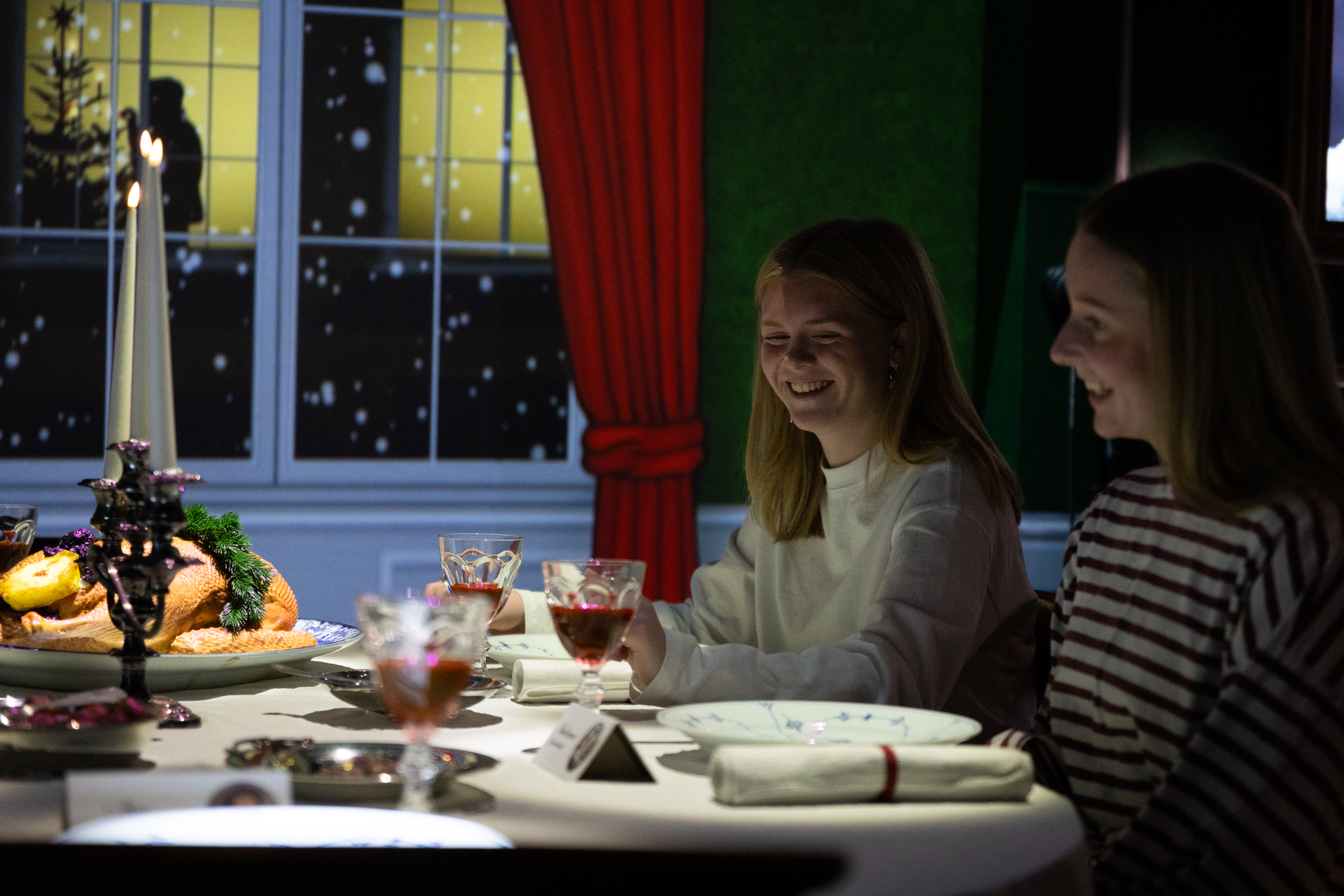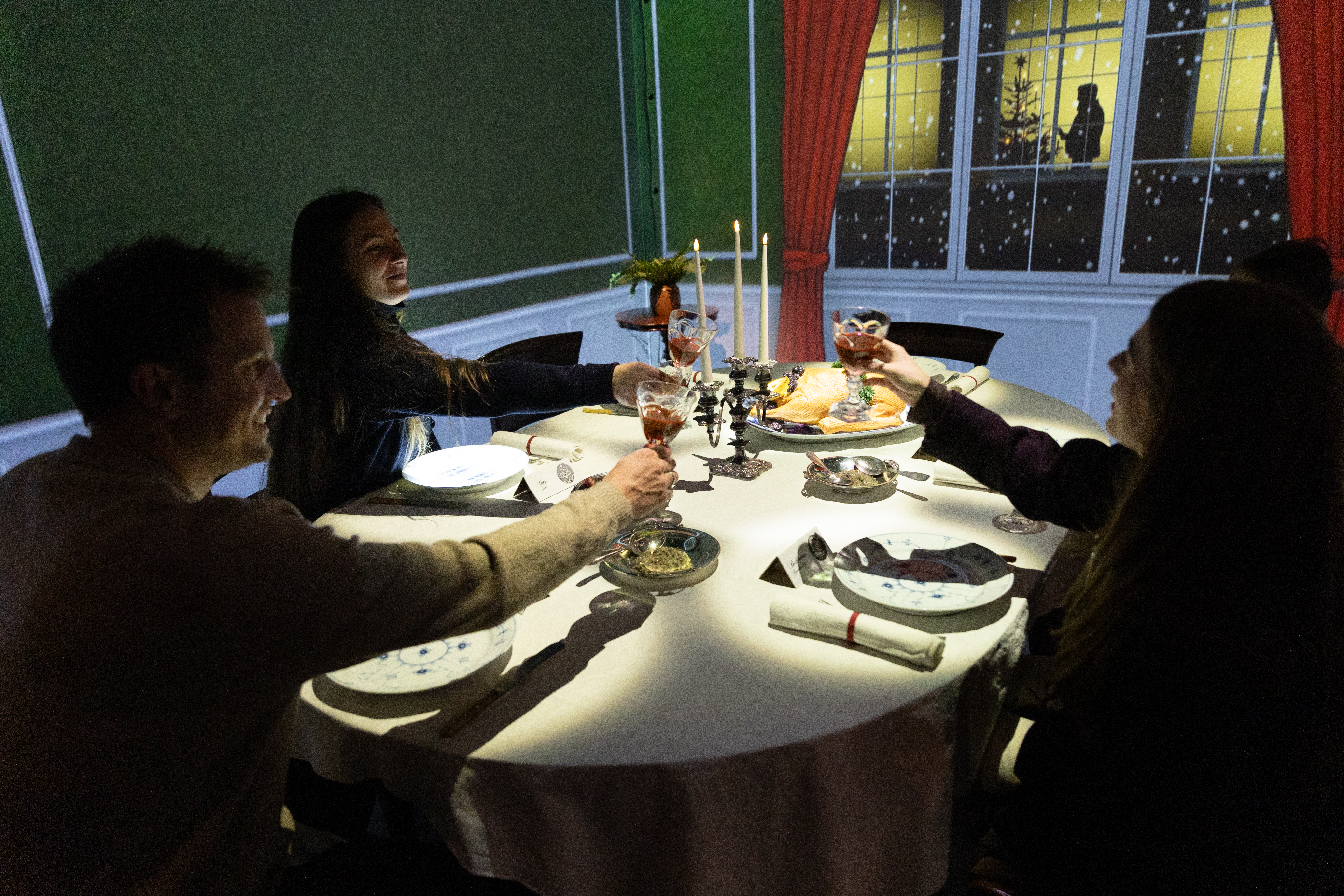 Du træder ind i en borgerskabsstue i København. Det er i Peters stue fra julefortællingen Peters jul. Julen er kommet på mode, og borgerskabet stiver højtiden af med juletræ i rød-hvide farver, søde sager og gaver. Ved det interaktive julebord kan du sætte dig til bords med familien og starte en samtale med medlemmerne. Hør, hvad der kunne antænde diskussionerne juleaften i 1870.